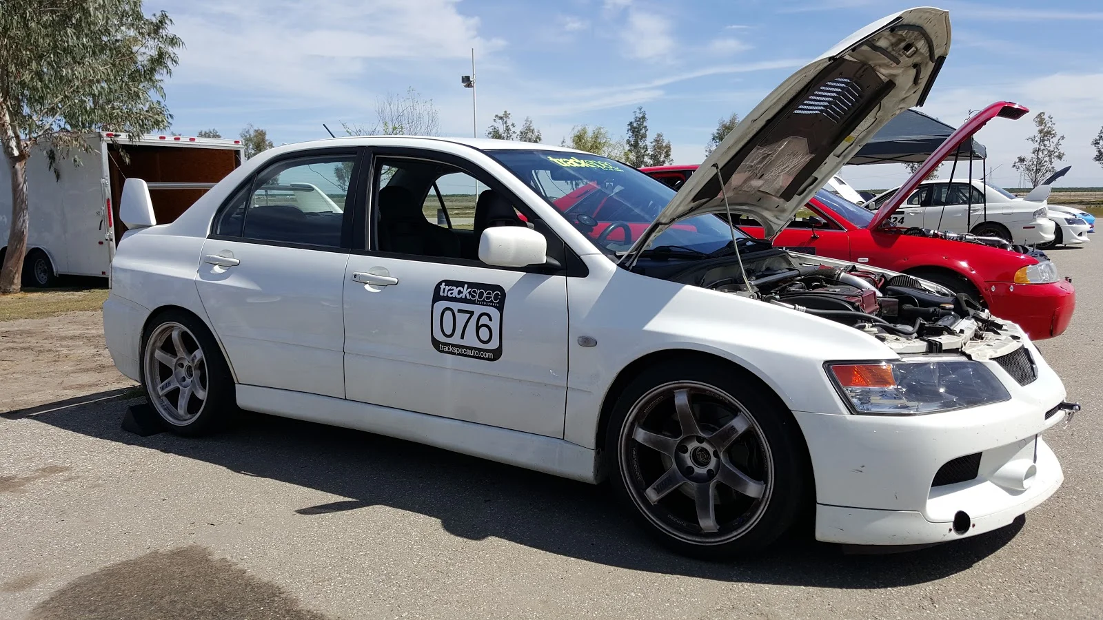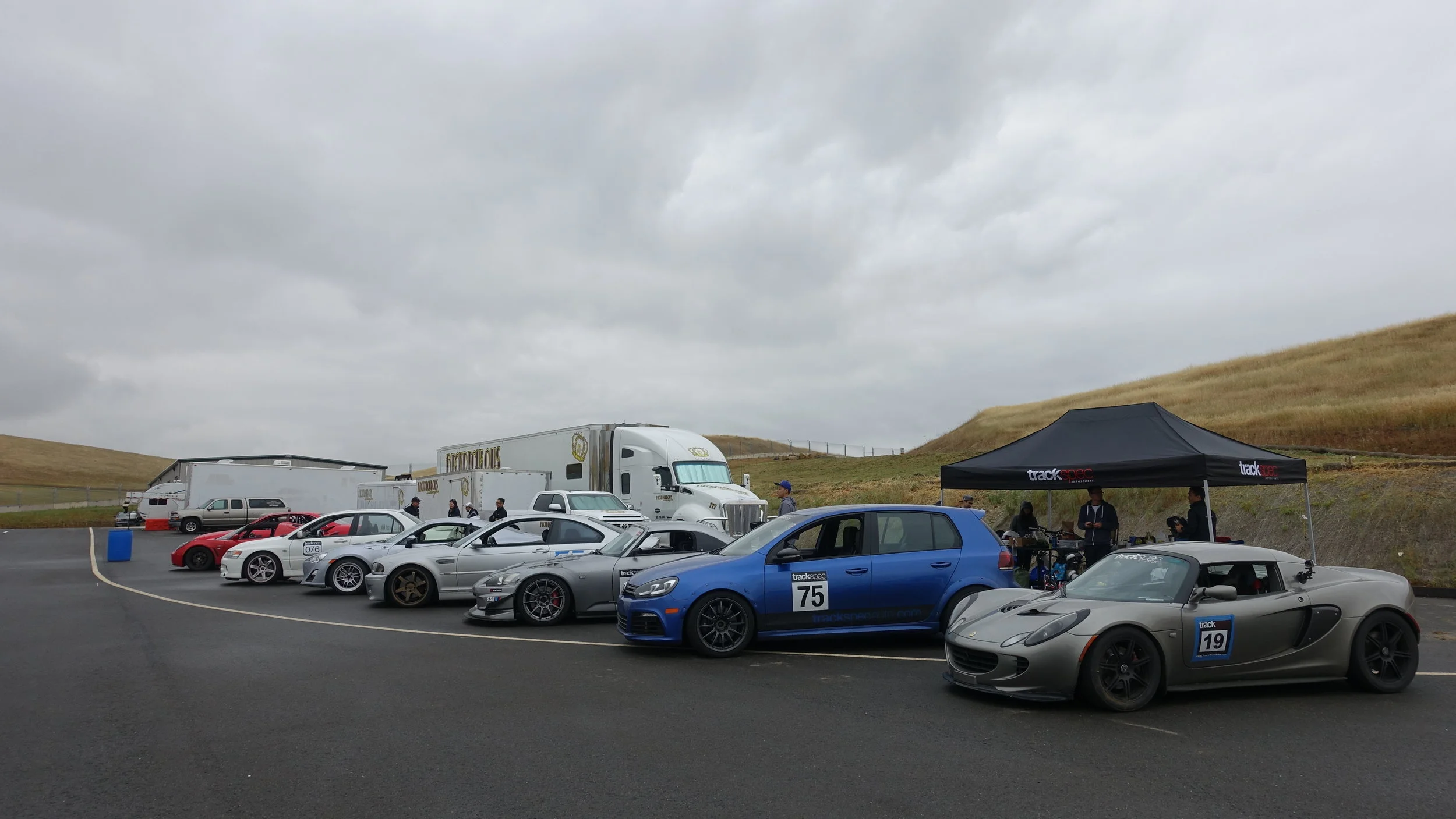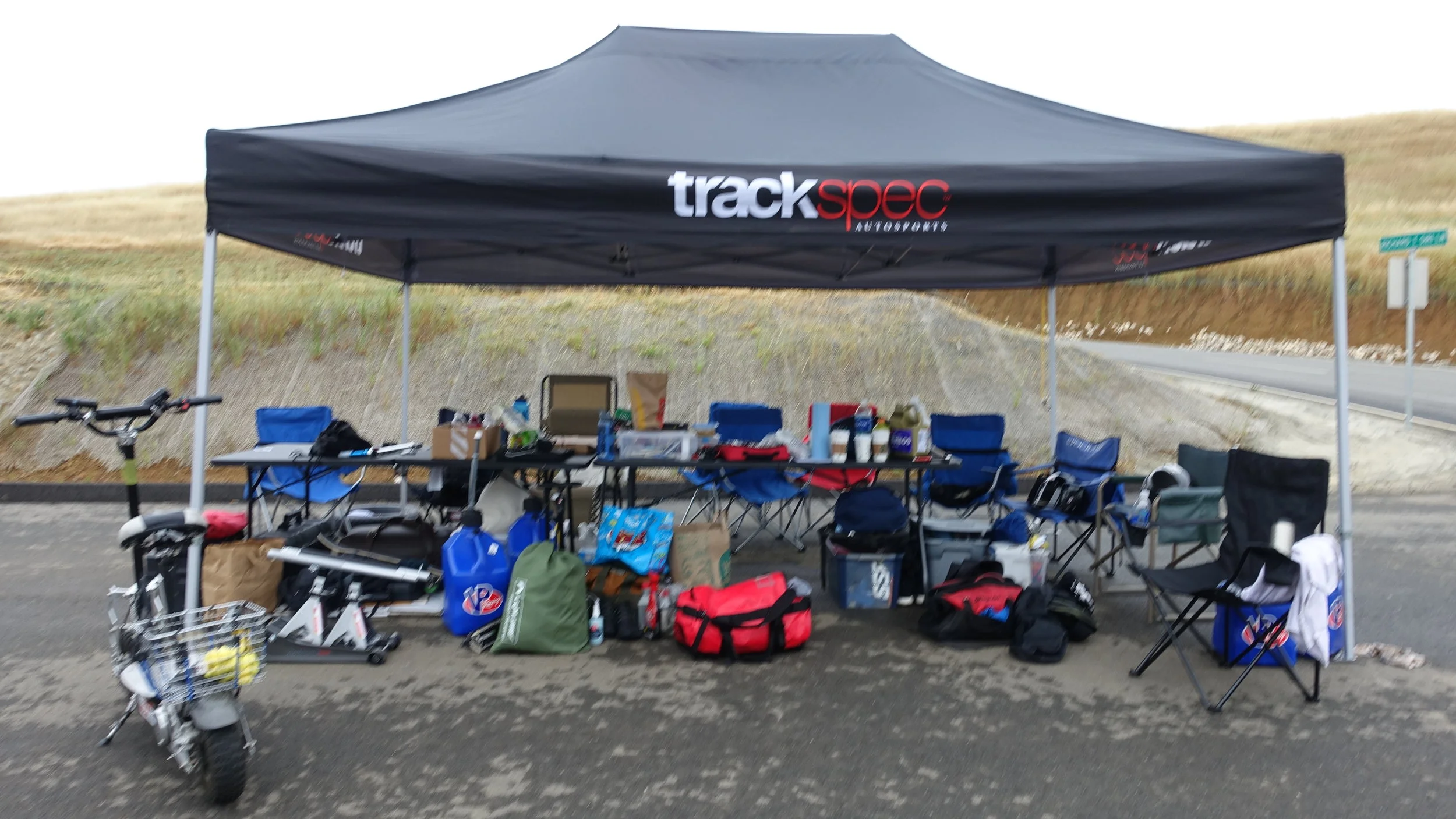 We had a BBQ on the racetrack for Jon's birthday and we came back with tons of leftovers. So that entire week, we BBQ'ed for lunch. But it was so hot, we started using our hatchbacks for shade.