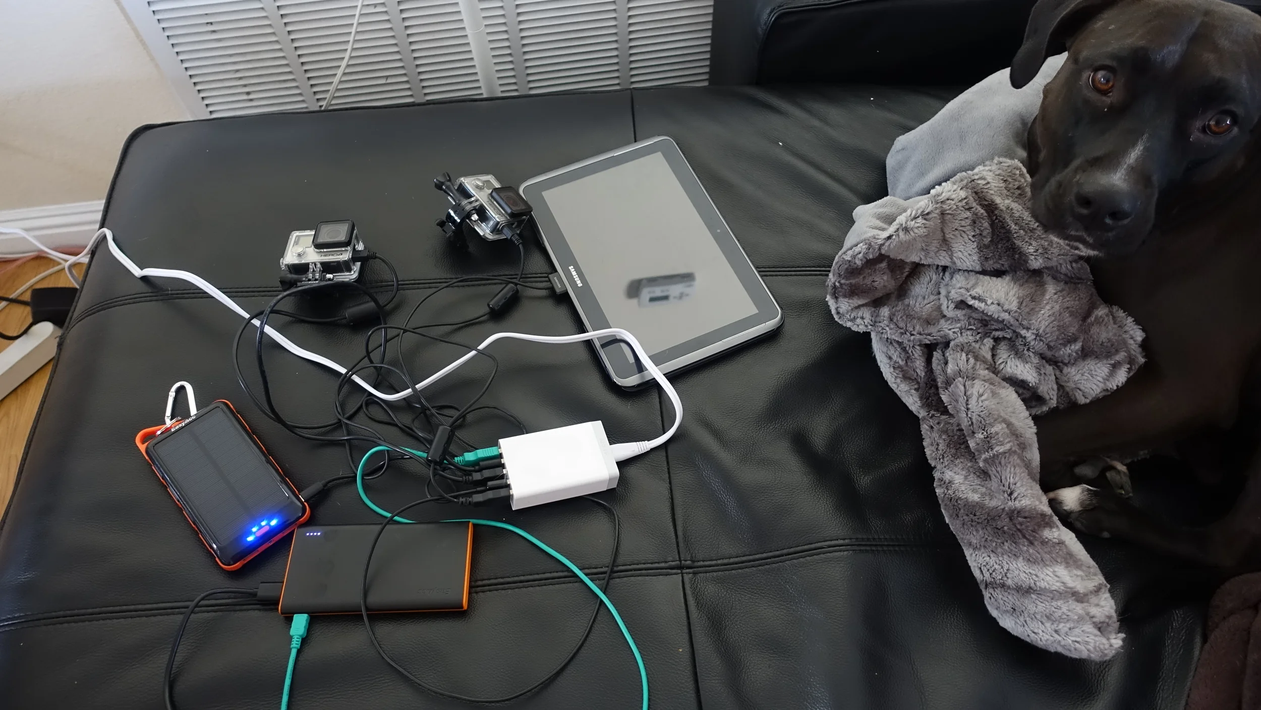 Gadgets: camera, GoPros, charging packs