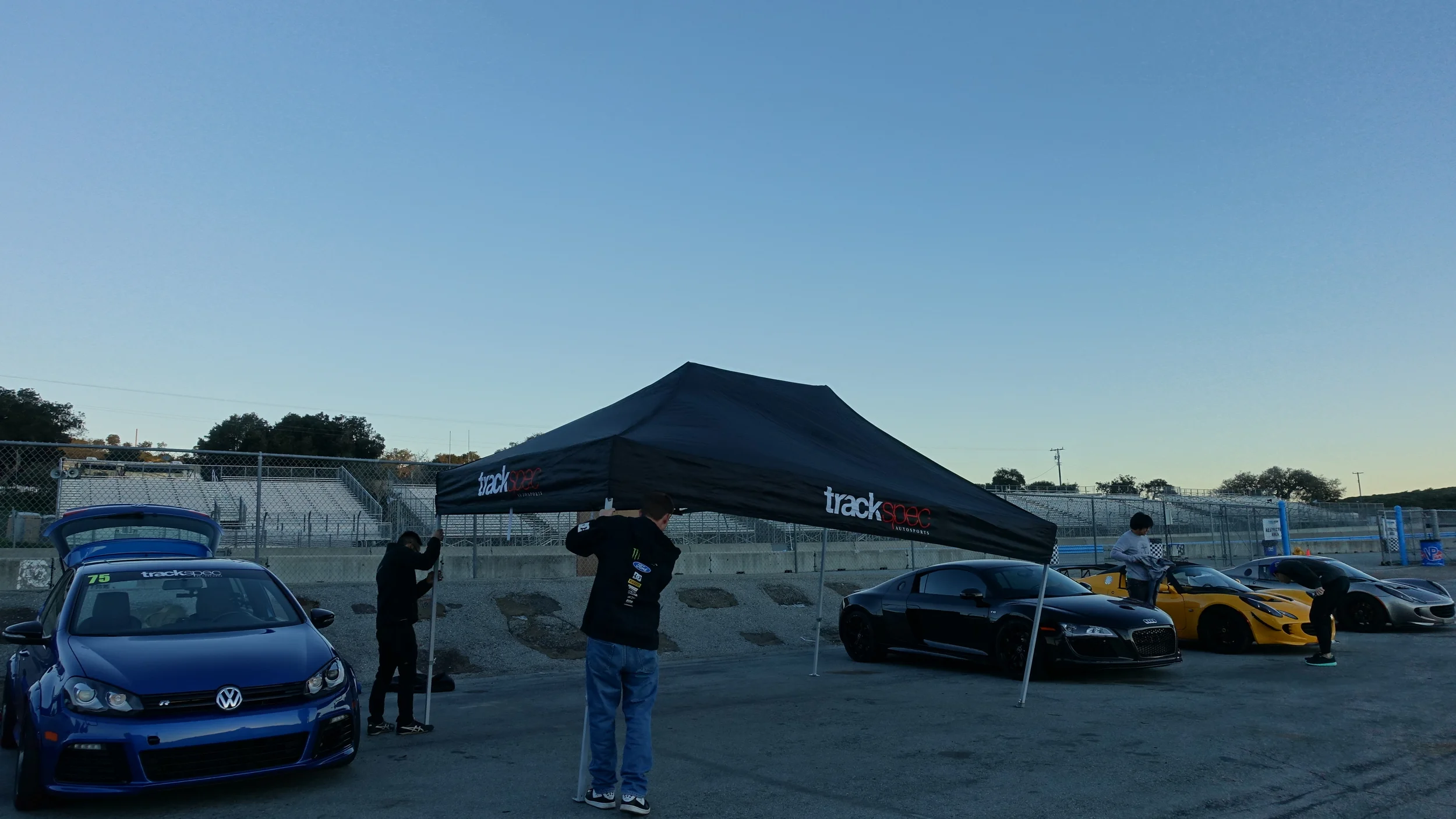 Since Laguna Seca is only a little over an hour away, we drive there in the morning and just drive back home afterwards. We usually meet friends and customers that live in the East Bay around 5:30am. The below photos didn't come out that great and I was WAY too sleepy and groggy to notice.