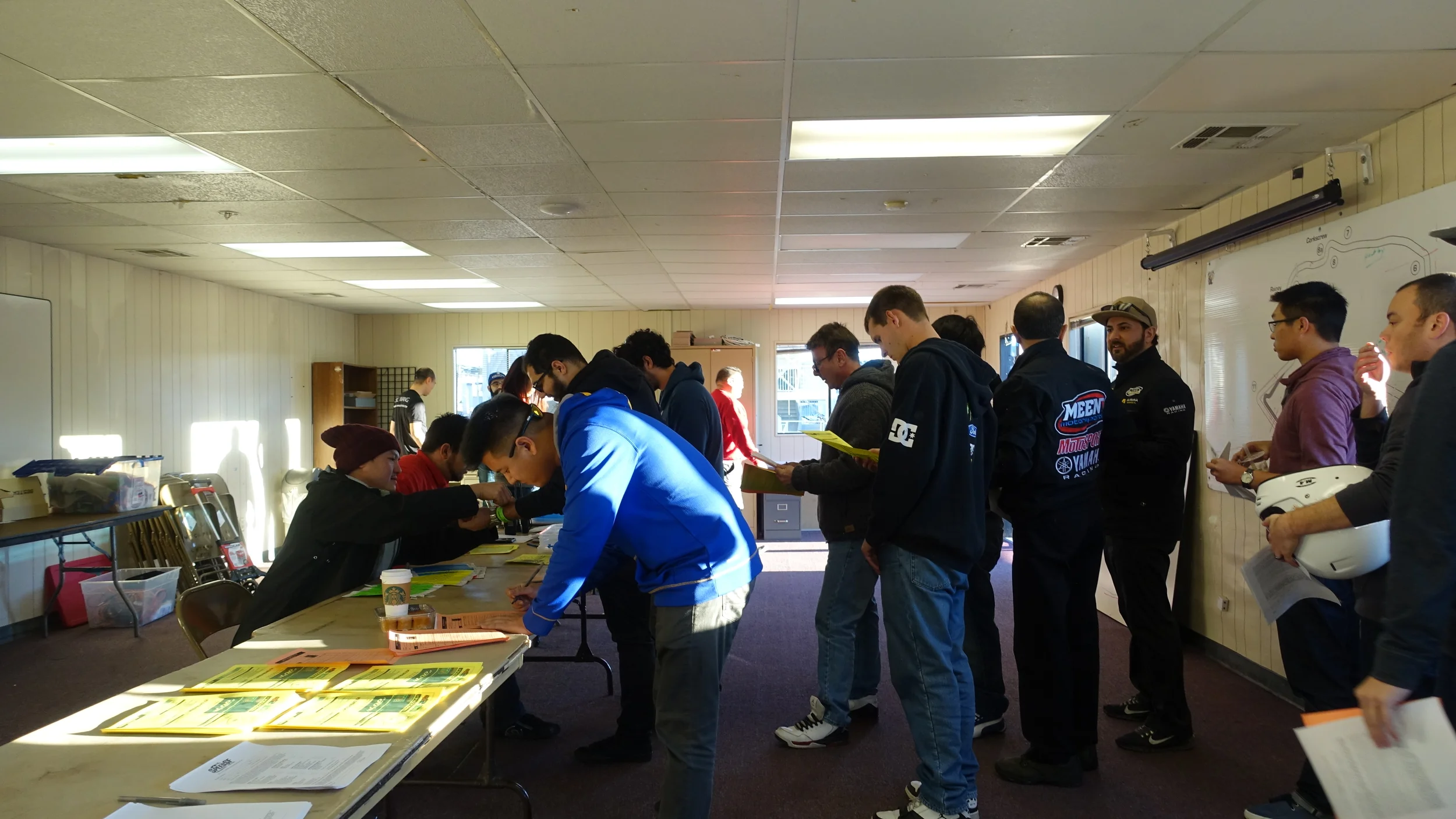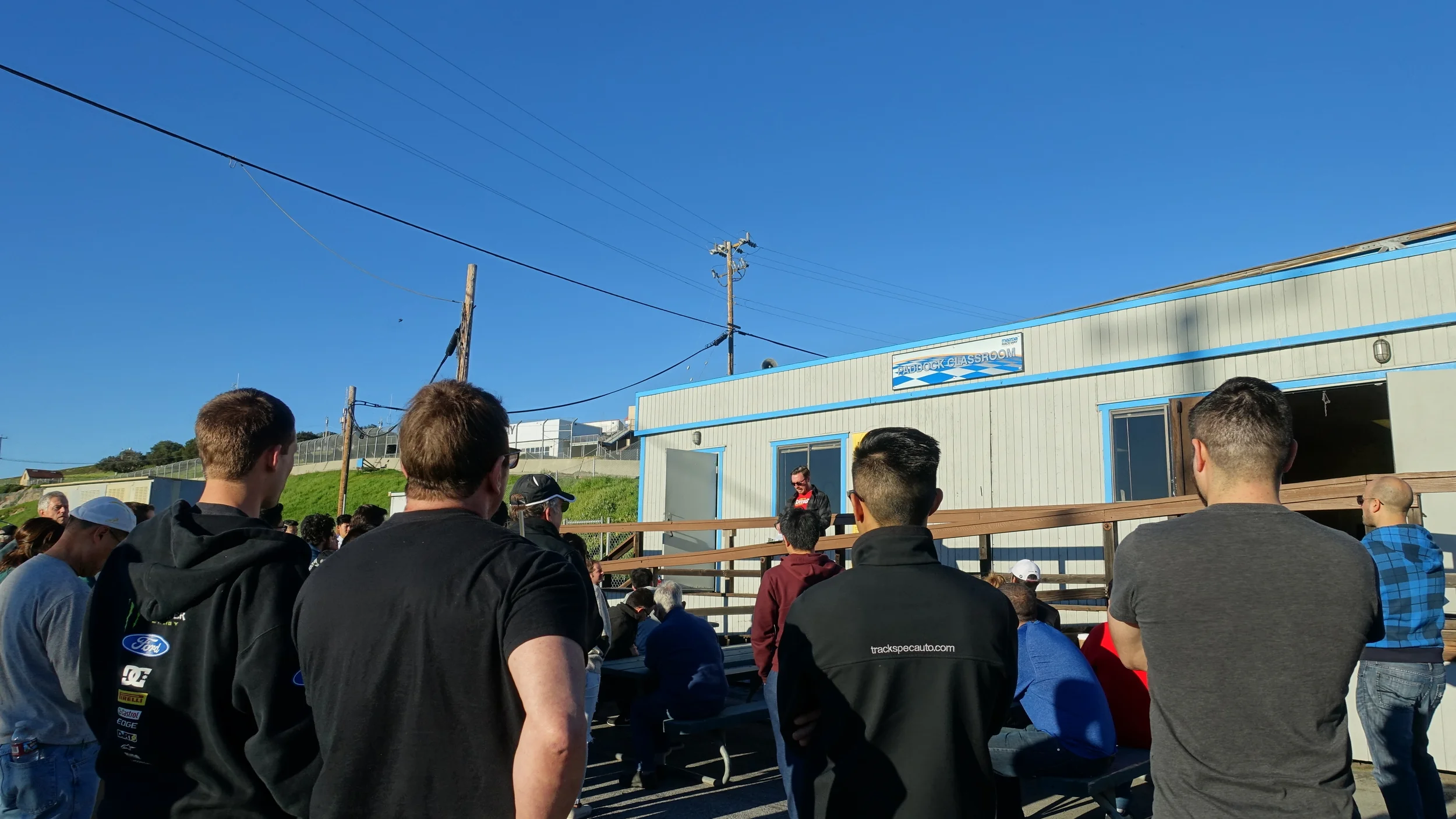 Next is the mandatory drivers' meeting. Here, they go over the rules and then hand out the mandatory sticker. On top of having to show your wristband to the workers before you start at the track, your car must also have a sticker that shows you registered and attended the drivers' meeting.