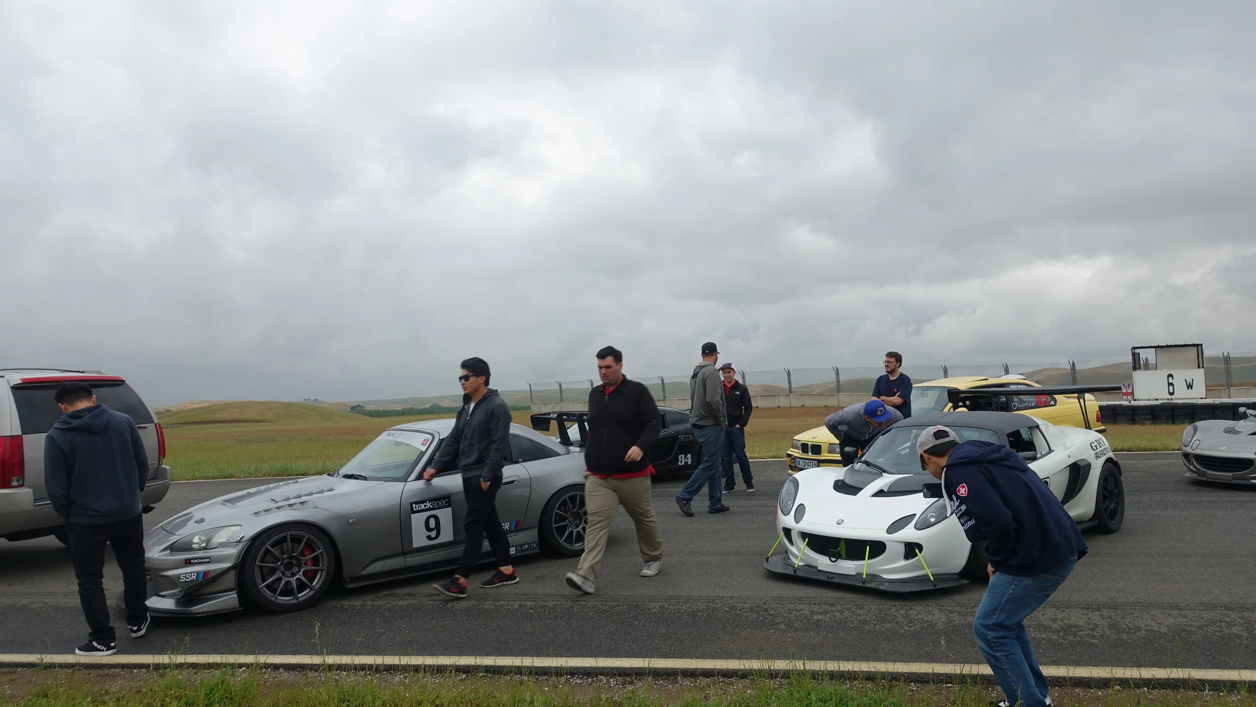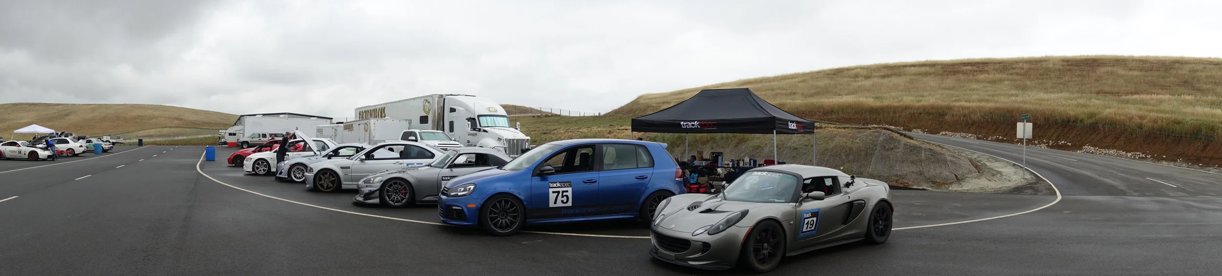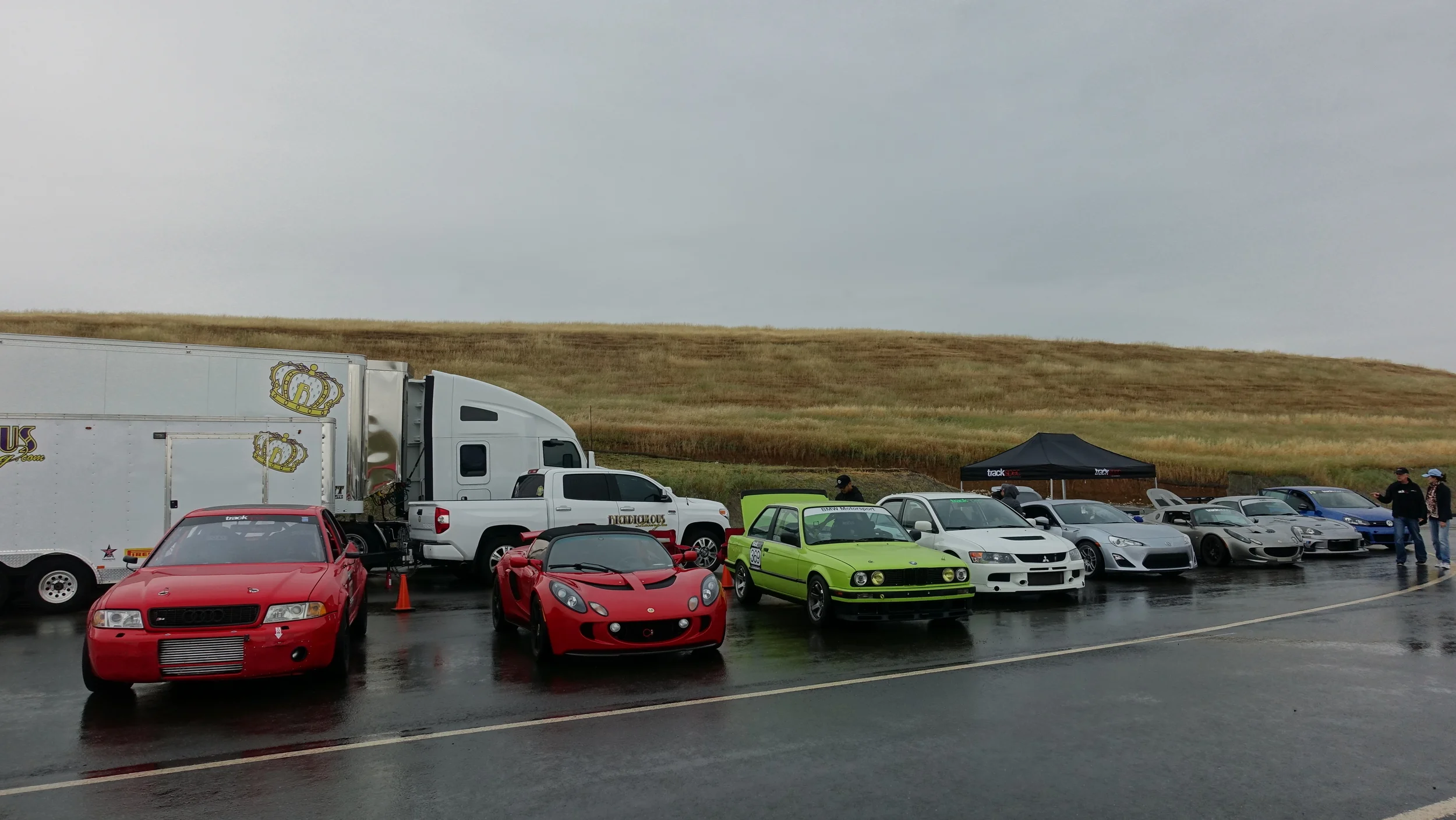 On Friday, we stayed at our usual, Colusa Casino Resort. We all live in the South and East Bay, so we like to stay overnight near the track. The casino is still 30 minutes away from Thunderhill but we like to have a little fun while we're there. The rooms are clean, not expensive, and we get to enjoy a nice team dinner together. Woke up next morning around 6am and left around 7:30am. Weather did not look great. As soon as we started walking to our cars, it started raining.