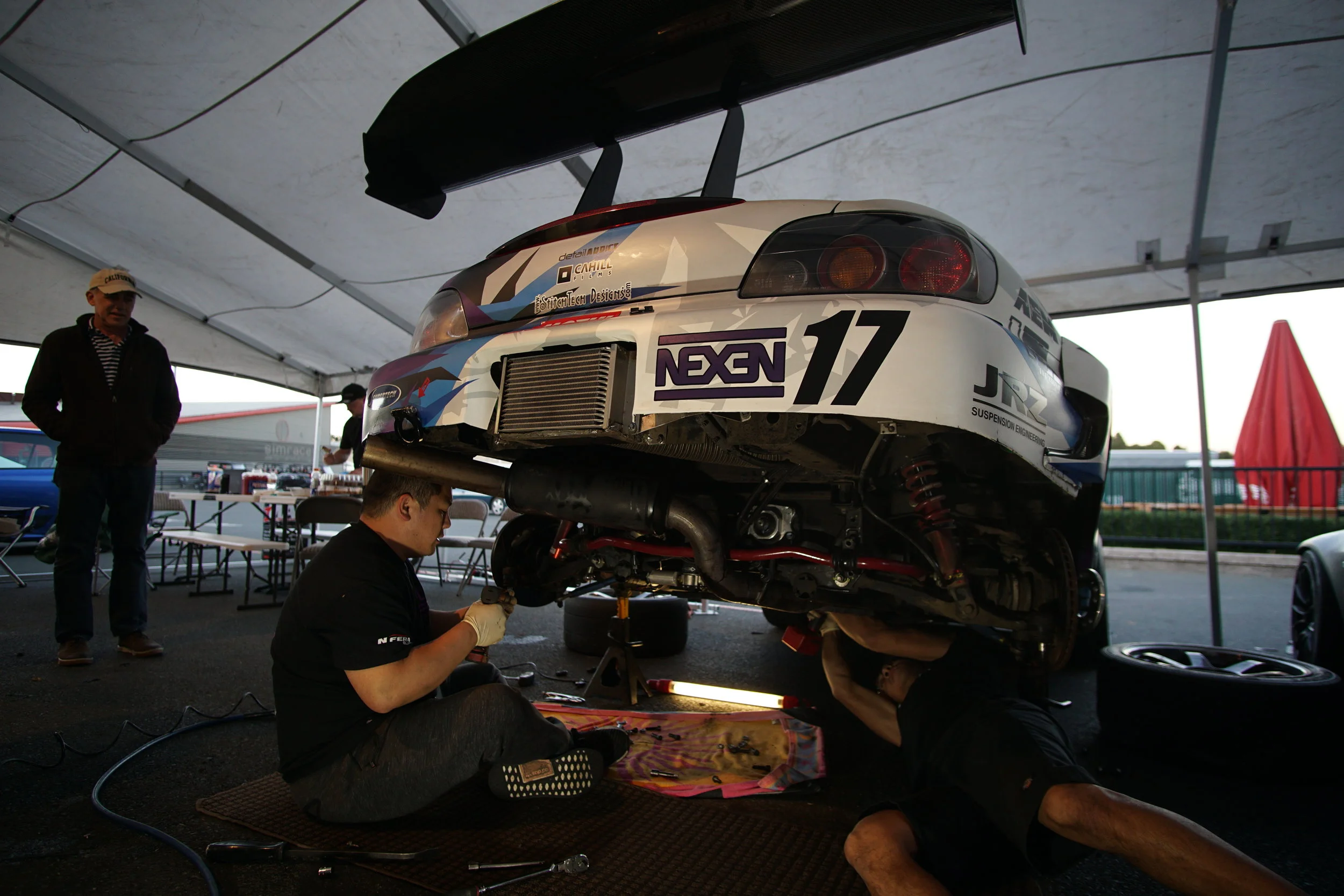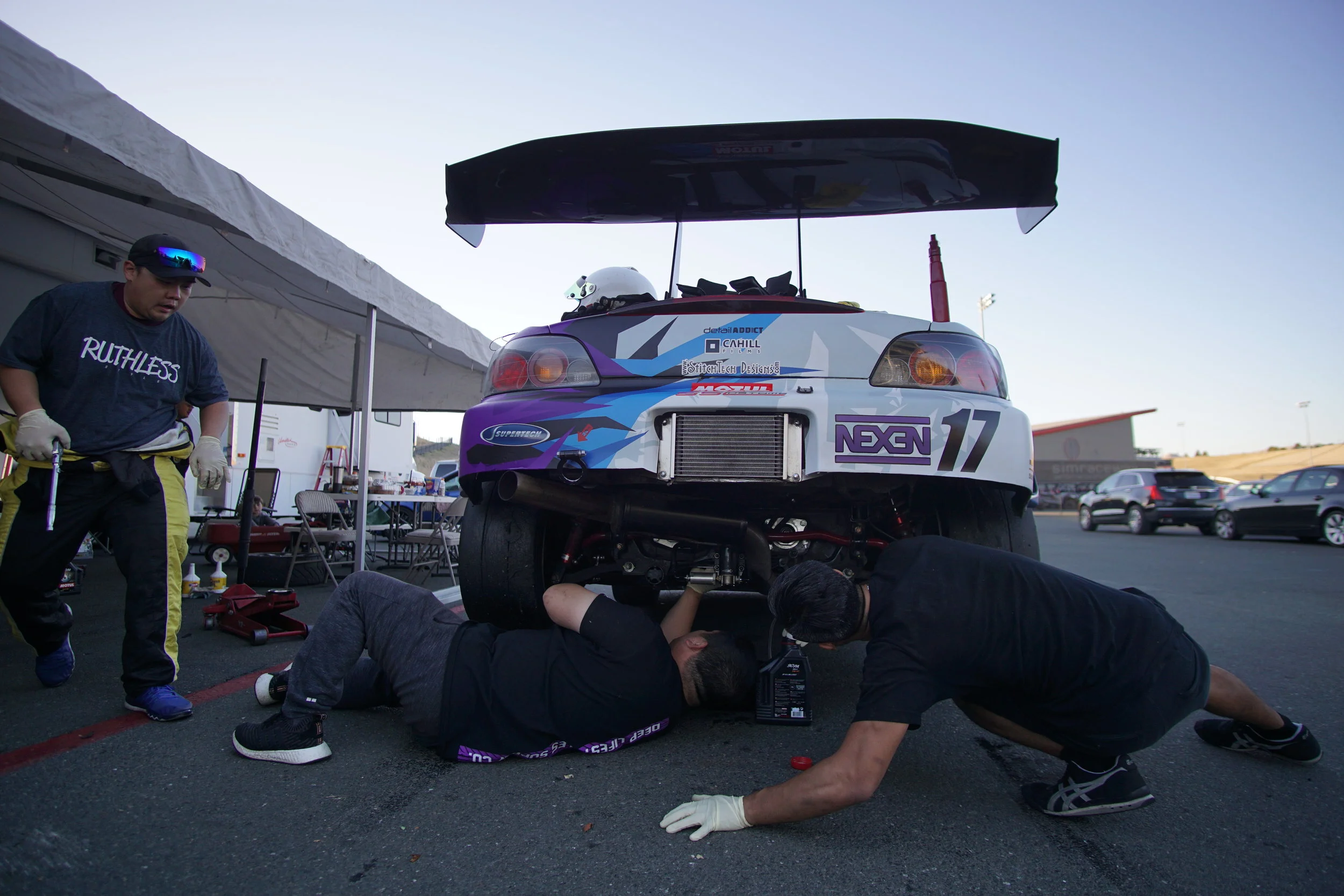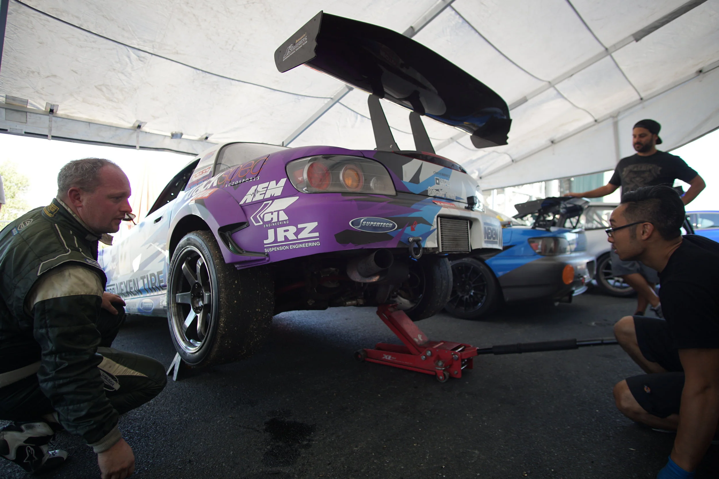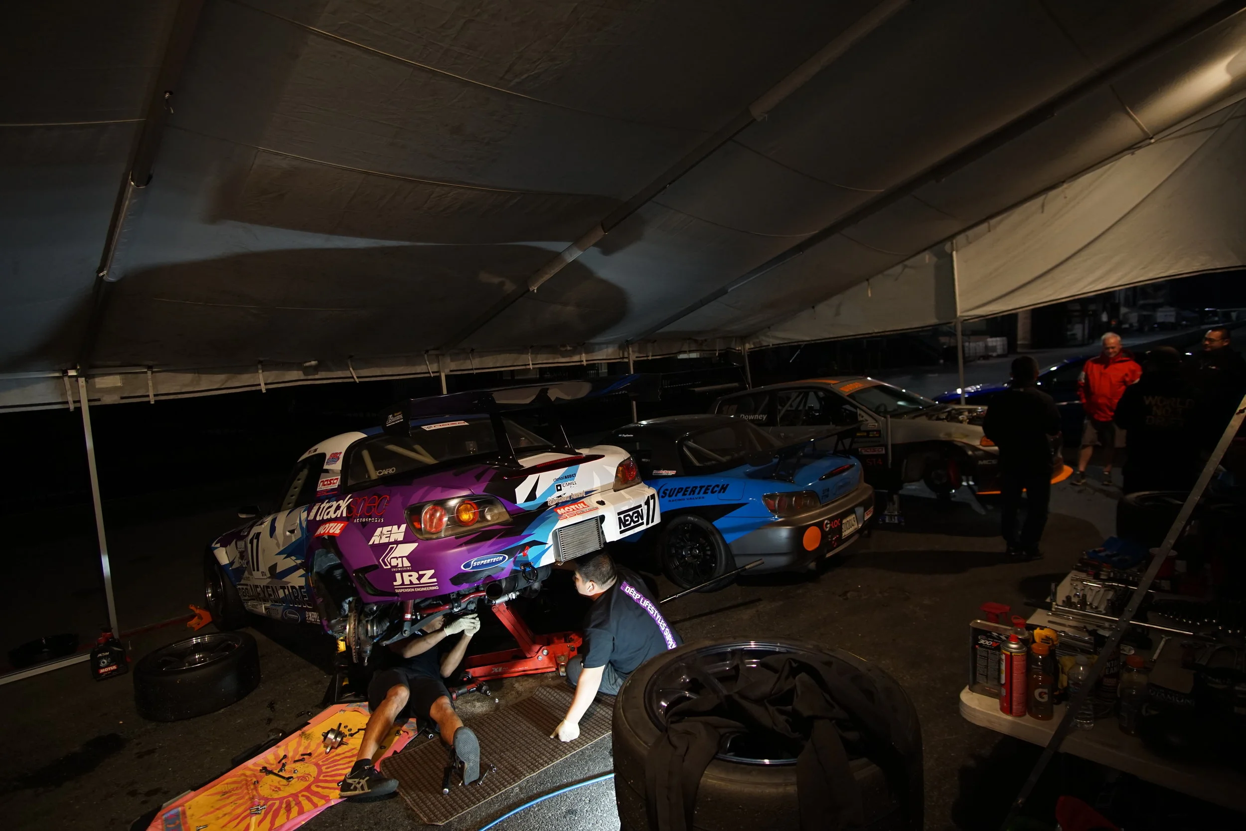 For this weekend, we were joined by Dan Chow, who also crews for Bay Area Formula D pro drifter, Matt Field. Dan is a friend to both Tom and Graham, and he was our ninth adult (because, we can't forget Max Downey and Rory Downey) team member (counting myself, Jon, Drew, Tom, Martin Tagliavini, Liam Downey, Ashley Downey, and Graham Downey). Together, we would field 3 cars in ST4 (2x S2000s and 1x EG6 Civic) and then 2 of those same cars (S2000 and EG6 Civic) in the 3.5 hour enduro on Saturday night.