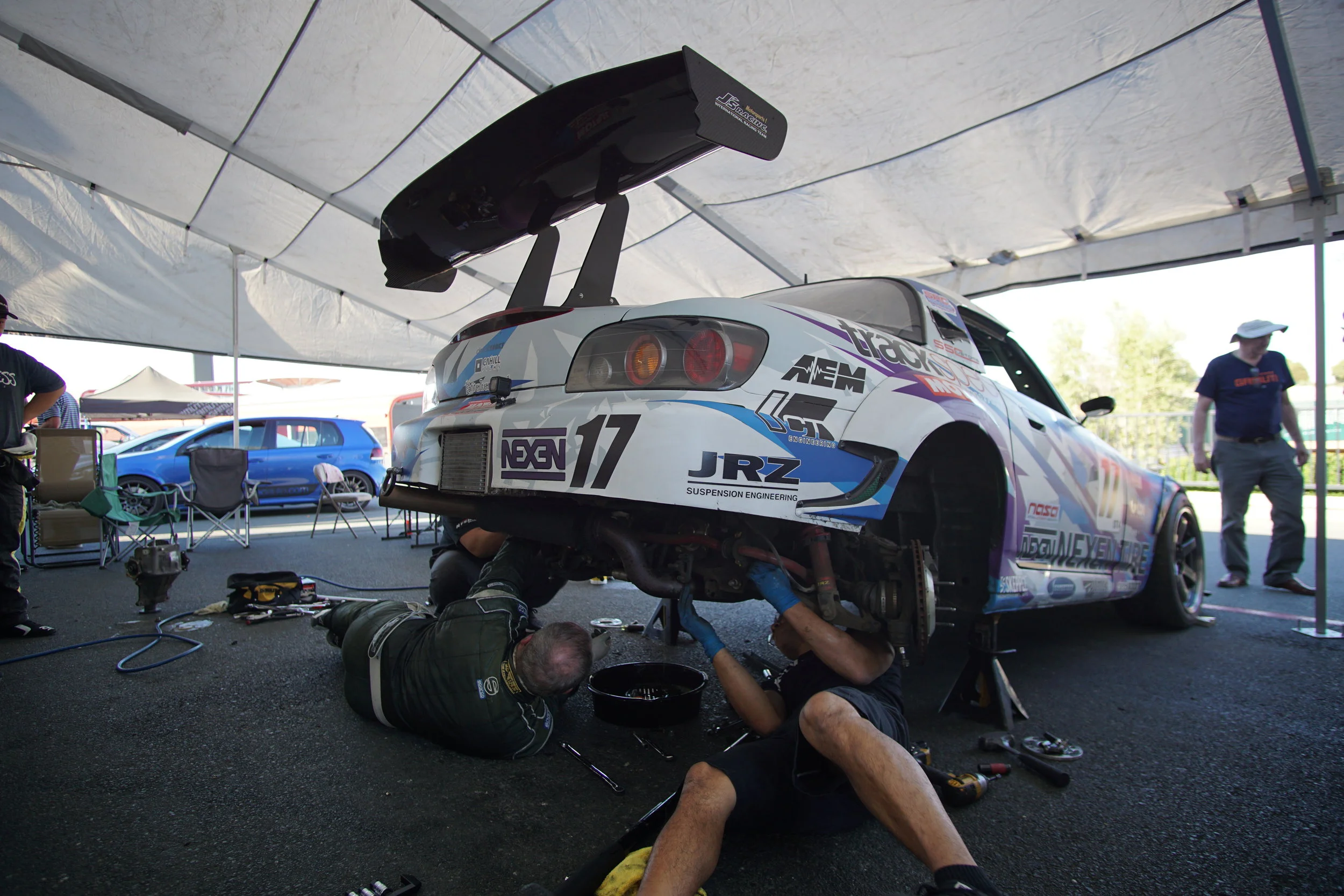 The team then got to work preparing for the 3.5 hour endurance race with Tom doing the first stint. Unfortunately, because of tight timing and Liam losing a clutch during the ST4 race, his Civic was not able to start the endurance at the green flag. So while Tom was out on track, everyone was busy swapping in a new clutch for Liam's B18C powered EG6 Honda Civic.