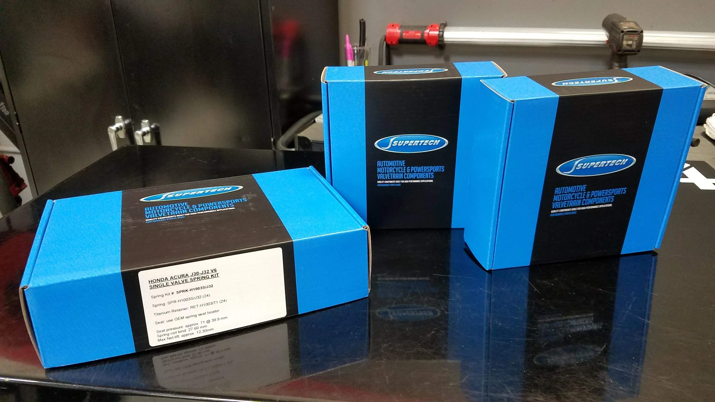 We left off in March after having just picked up our new (to us) J32A2 engine, and as promised we've been busy getting it ready for the demanding rigors of race conditions. We were thrilled to receive high-performance valves, springs, and retainers from my partners at Supertech Performance in order to do just that. These awesome parts allow us to rev the J32A2 engine well beyond it's OEM redline limitations, but safely.