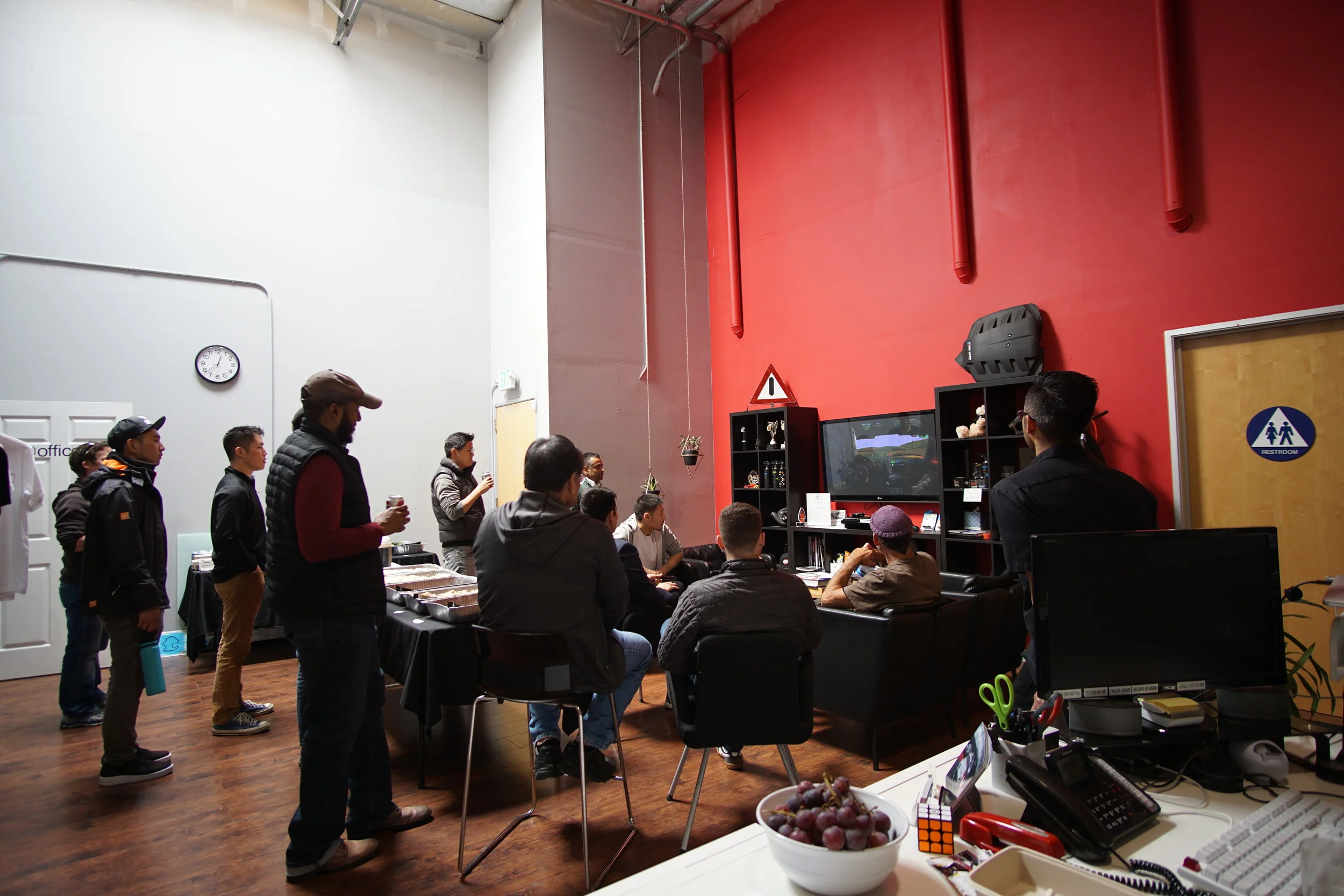 Hanging out in the office after lunch, watching youtube videos from the track.