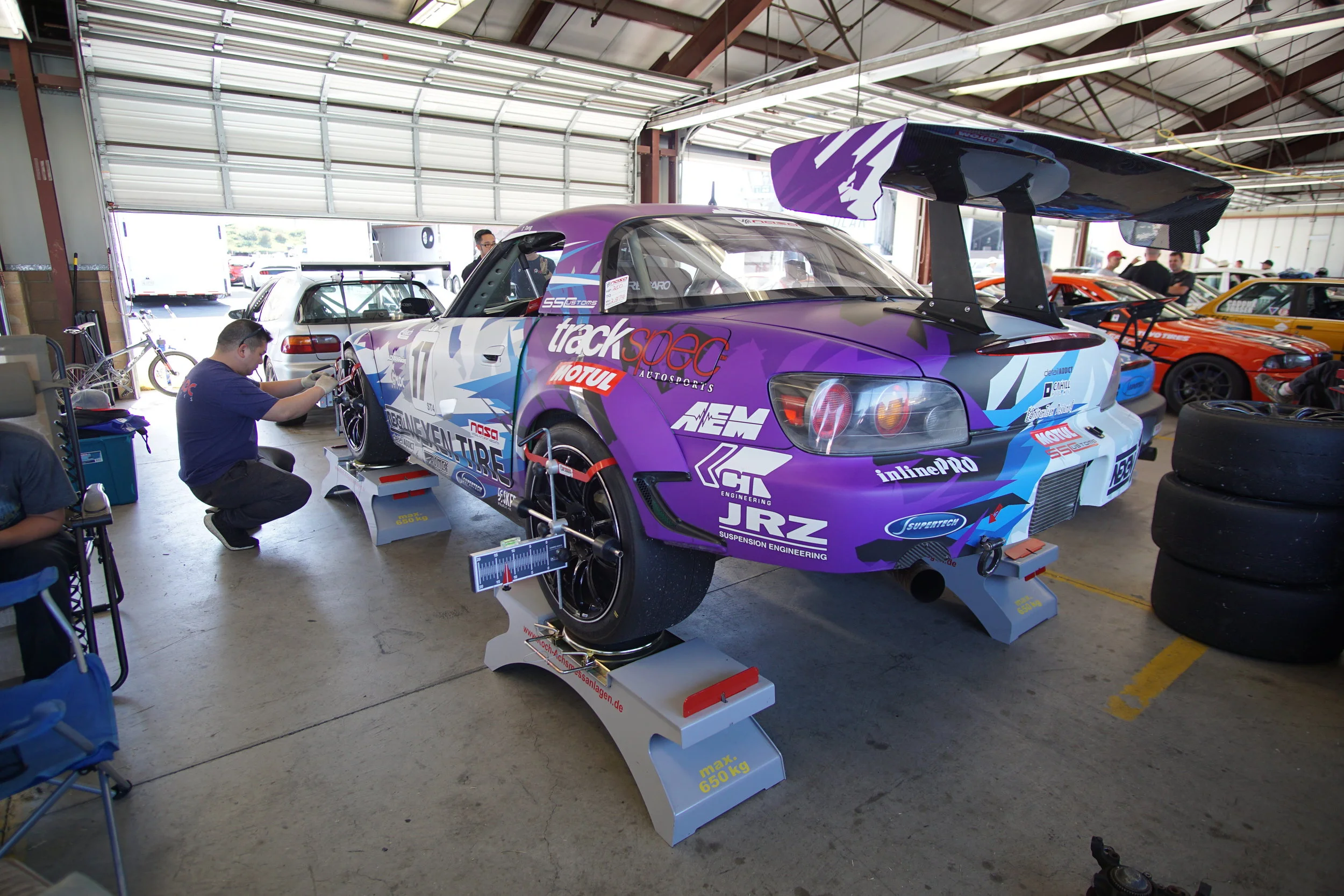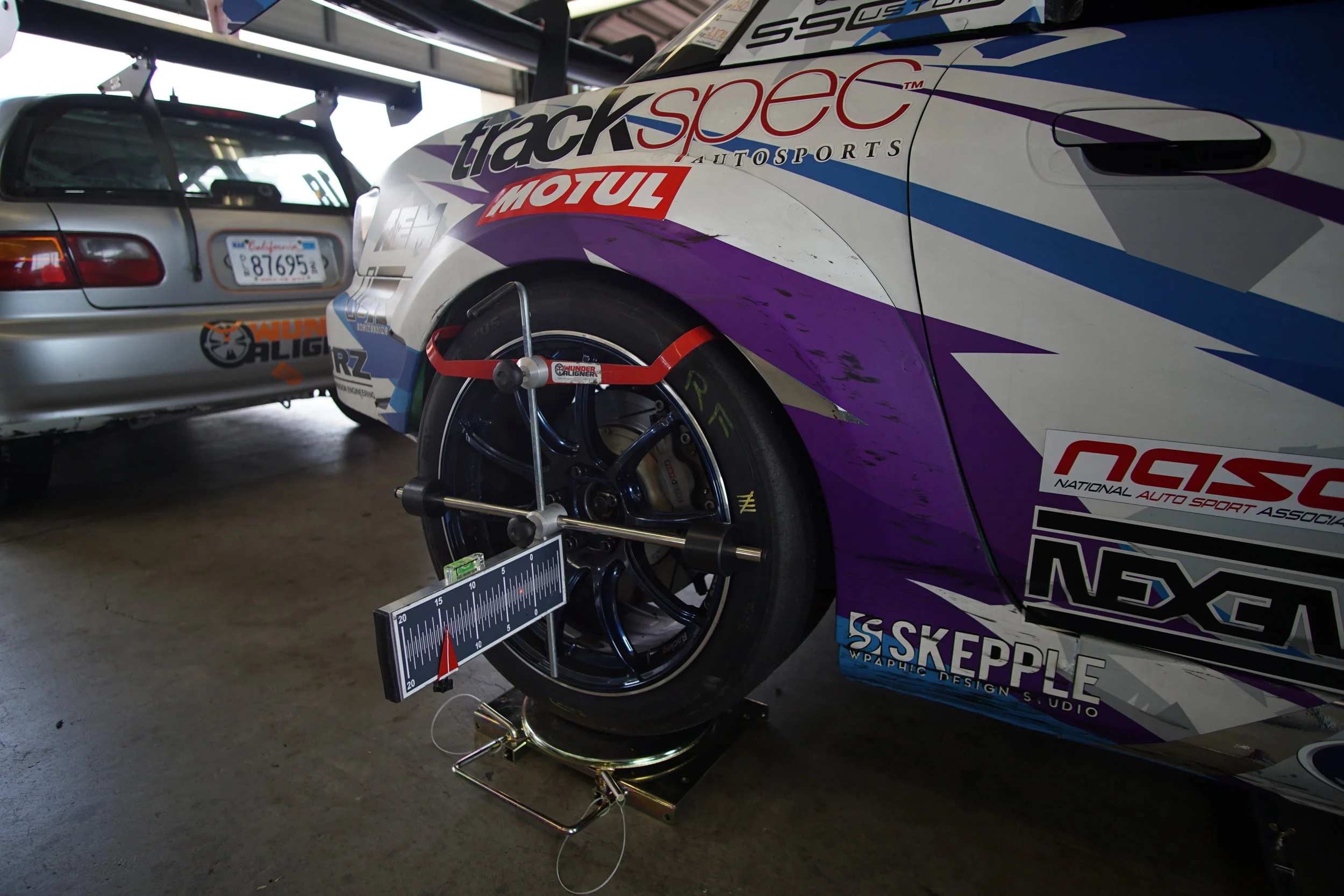 After the car cooled down, we got to work. Graham donated a spare knuckle, so we got the car back together very quickly. Then, it was time for an alignment using the awesome Wunder Aligner HD10 system, provided by Liam.