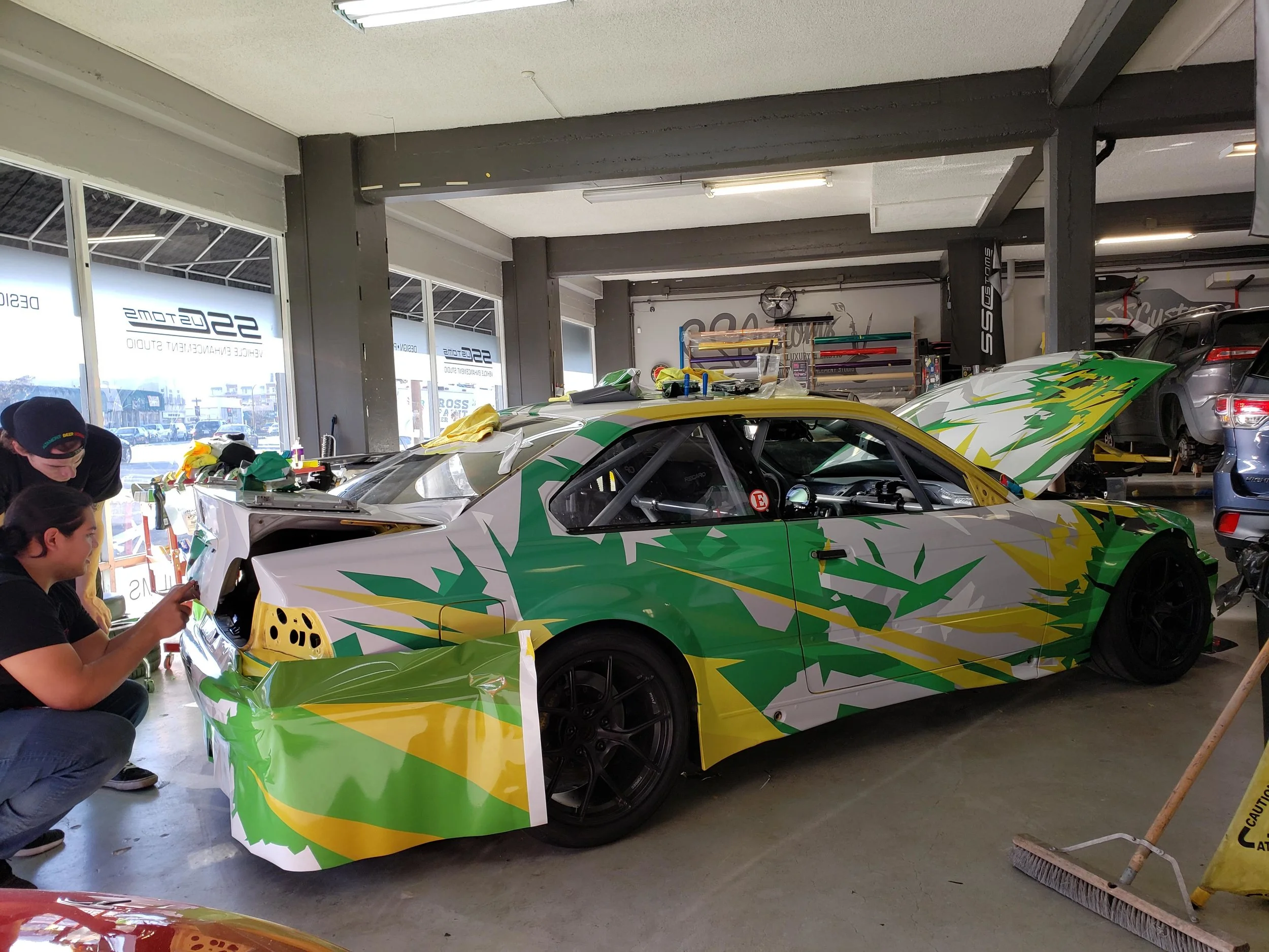 After our successful test day at Sonoma on Friday March 1st, Graham and I brought “Heidi” down to SS Customs in Redwood City, CA that very same evening for the installation of this year’s livery. I was thrilled to once again partner with Adam and Scott from Skepple on the design, and my longtime friend, Shareef, from SSC on the print/install. The plan was that they would finish the car in time for the season opener, and boy...did they deliver!