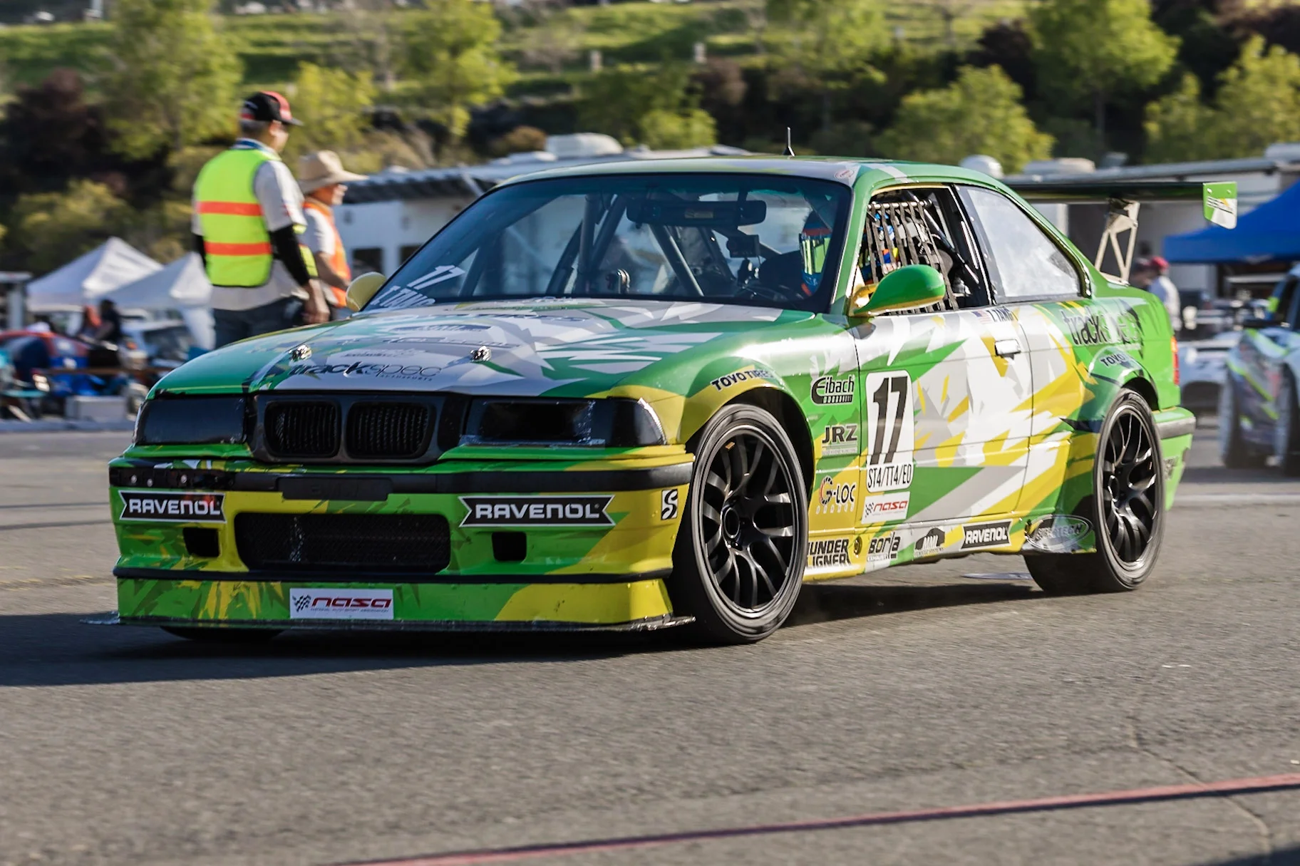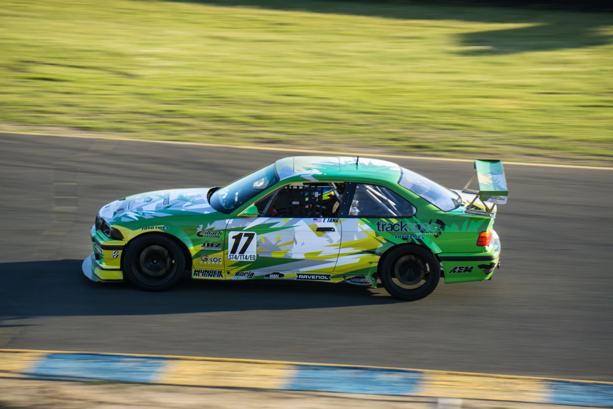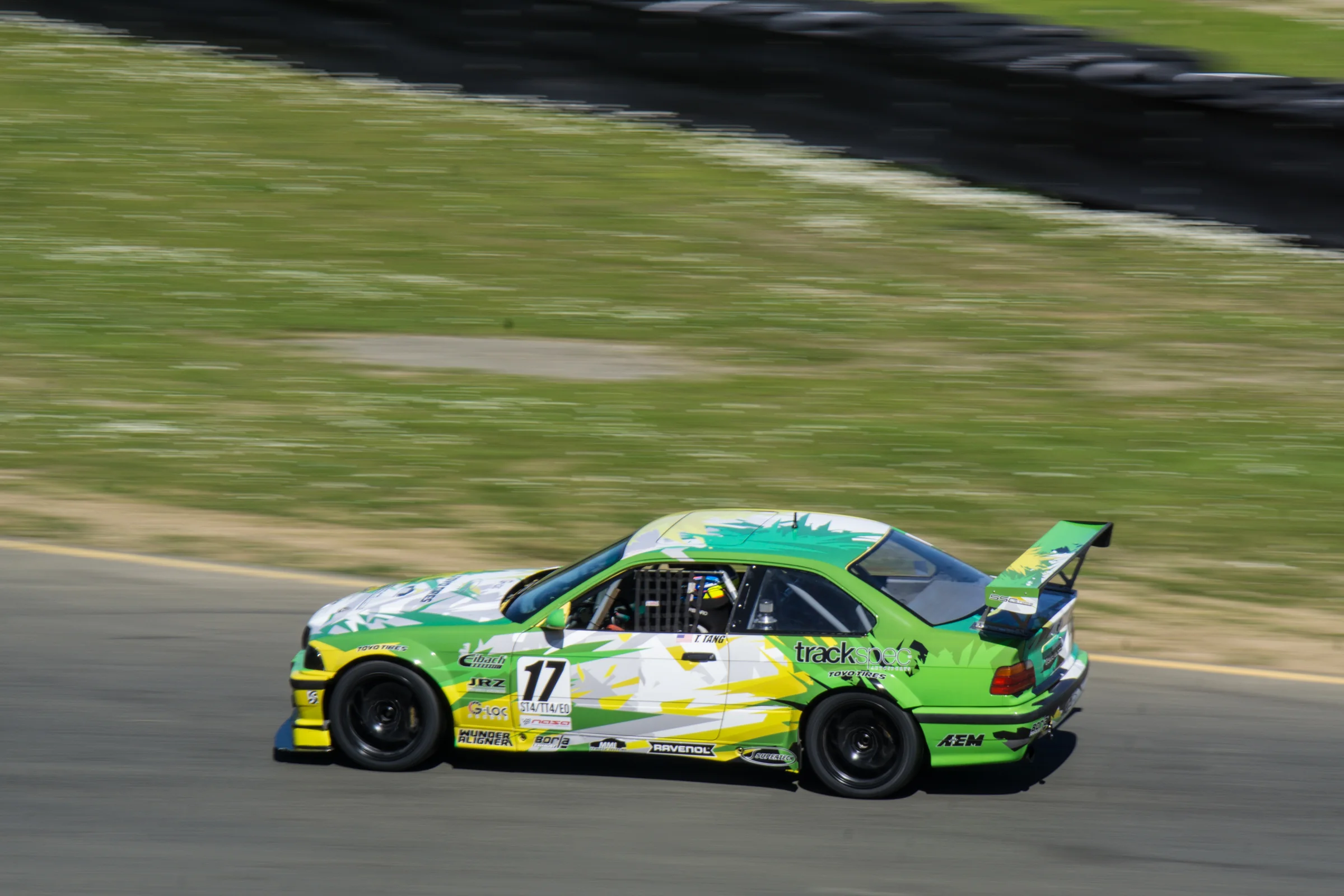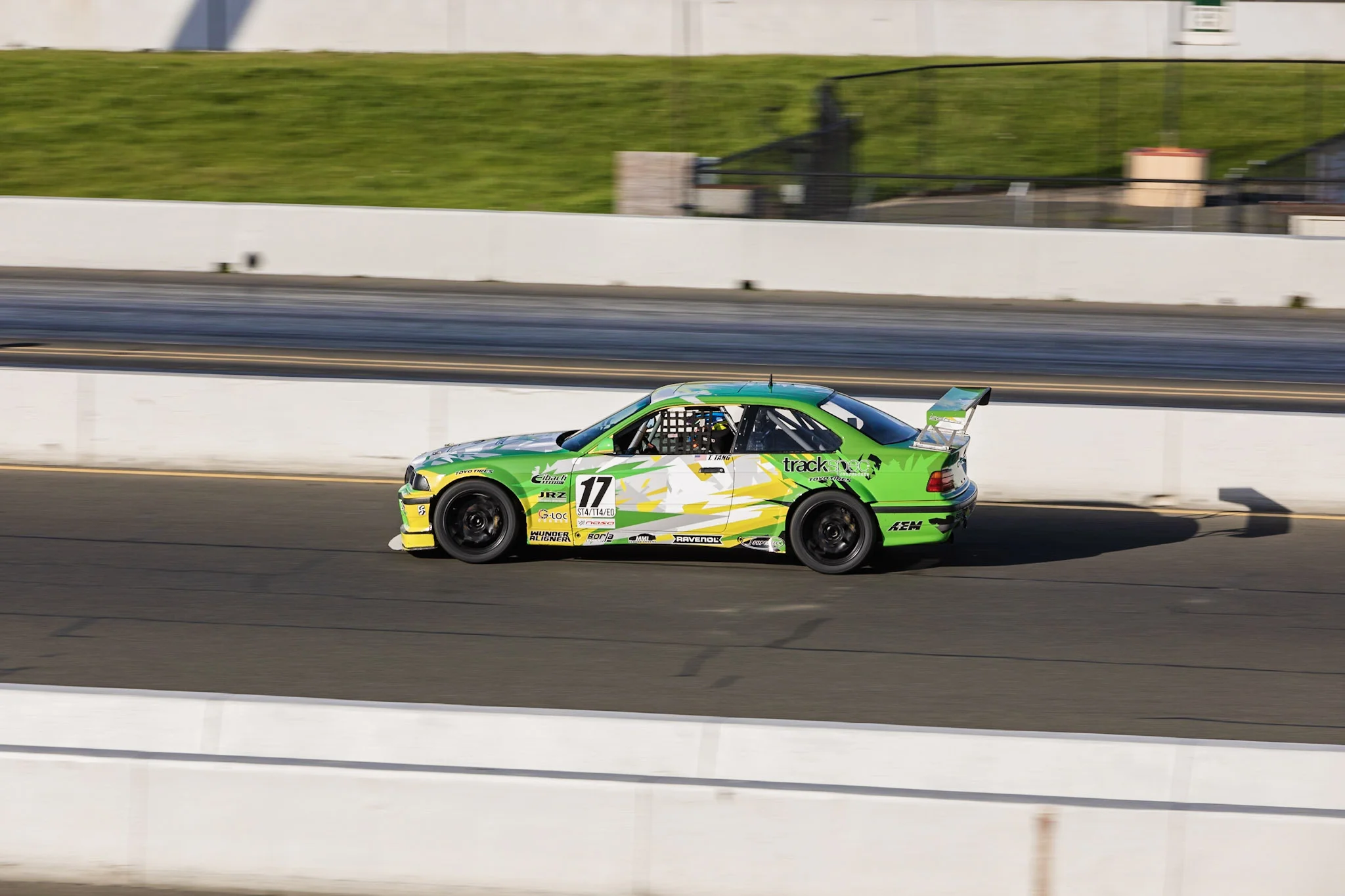 Saturday morning arrived and we began the day by going to get “Heidi’s” annual tech inspection done. Afterwards, I went out for morning practice at 8am. Morning practice with NASA is often exciting and filled with chaos and traffic because they combine both A group (Spec Miata, Spec E30) and C group (Super Unlimited, Super Touring, Legends and Thunder Roadster), so it ends up being more than 70 cars on track at the same time. “Heidi” felt good though, and I managed some 1:52s during the short 20 minute session.