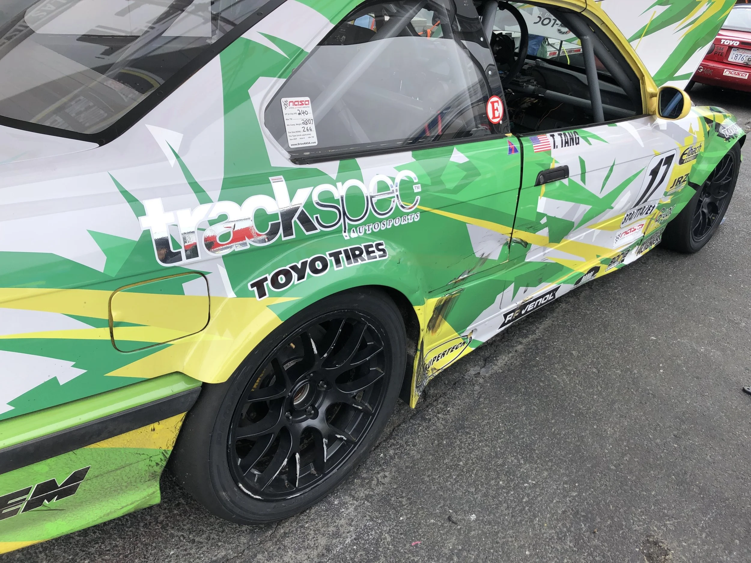 Fortunately, I was able to borrow a spare control arm from Tony Zwain at EDGE (thank you so much!) and after installing the arm, balancing my wheels, and quick alignment check we were back in business. Huge shout-out to my teammate, Graham Downey, for helping to get “Heidi” fixed so quickly. You are my hero.