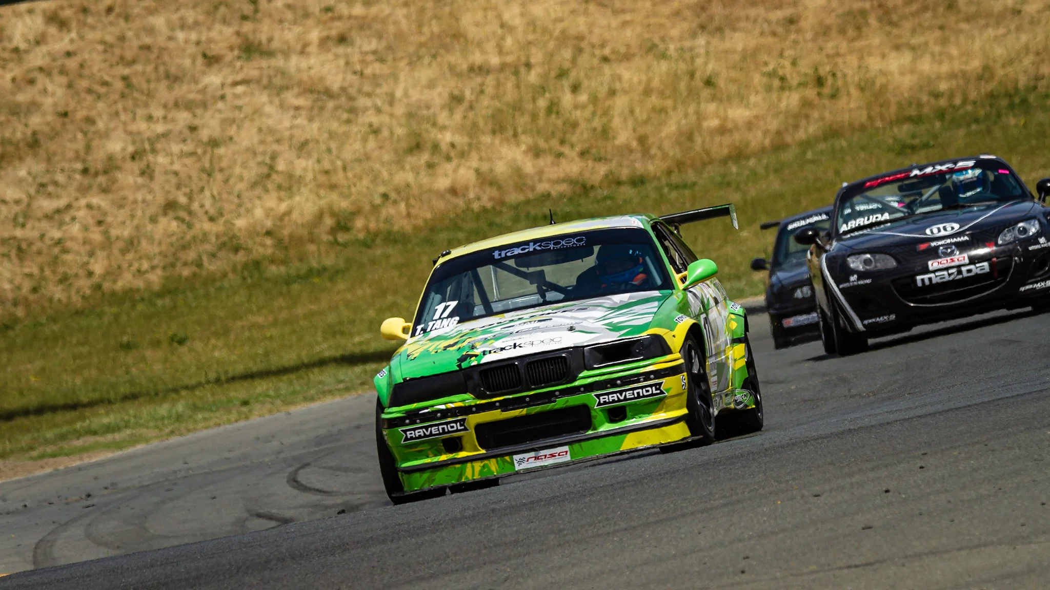 This meant that GASS and TransAm had their own run groups. So our warm-up session contained a total of 110 cars from classes like Spec E30, Spec Miata, Spec E46, Thunder Roadsters, Legends, USTCC, Super Touring, and Global MX-5 Cup. It was quite chaotic. I think I only managed a 1:50 in all of that traffic.