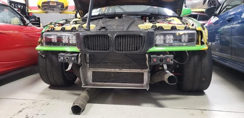 Last winter, we linked up with Charles and his team at Racebred Components down in Southern California. We became aware of Racebred products through several friends who run their splitters on the Honda S2000 and FK8 Civic Type R. I was impressed by the quality and thought they also provide a budget-friendly option for track day junkies, as well as racers. Charles and I began talking about working together on an adjustable chassis mounted splitter and voila! We are proud to showcase the first prototype Racebred Components splitter and bracketry design for the BMW E36 M3 platform.