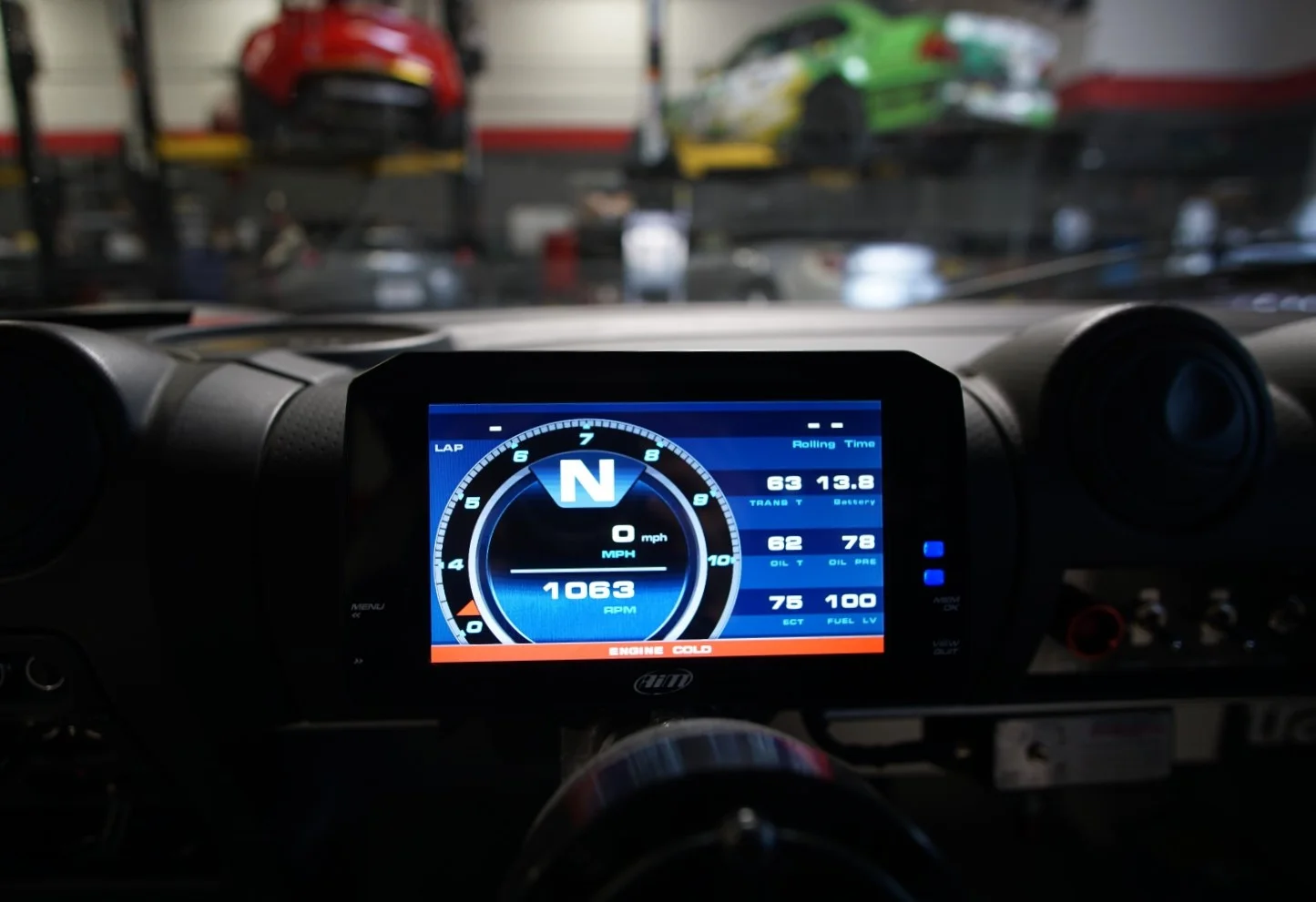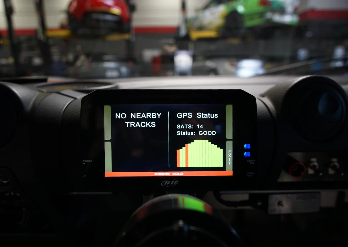 AiM’s color TFT display dash loggers can easily be seen even in direct sun light, so I decided to get rid of the instrument cowling and replace it with an airbag cover. There are menu buttons on the sides of the dash, so those would be difficult to access if it was tucked away behind a cowl.