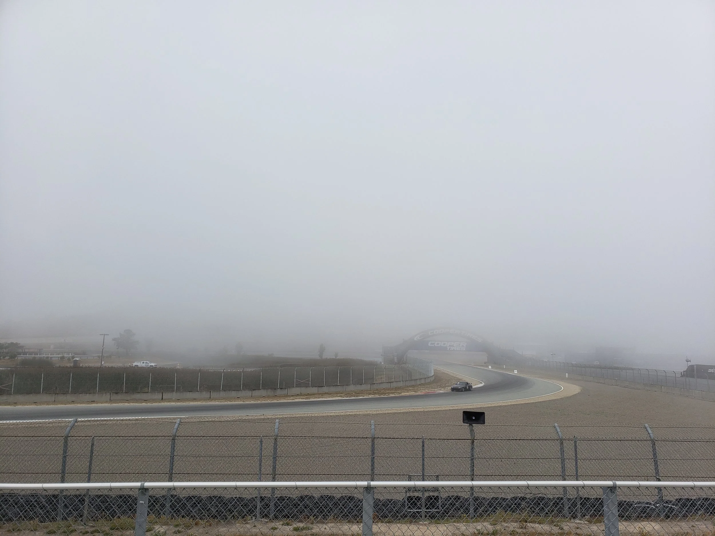 The first session was extremely foggy and visibility was poor, so we were under a yellow flag (no passing) for pretty much the entire session. I was only doing 1:50 laps, but I could already tell that the car was going to be much faster with the new tires and wing.