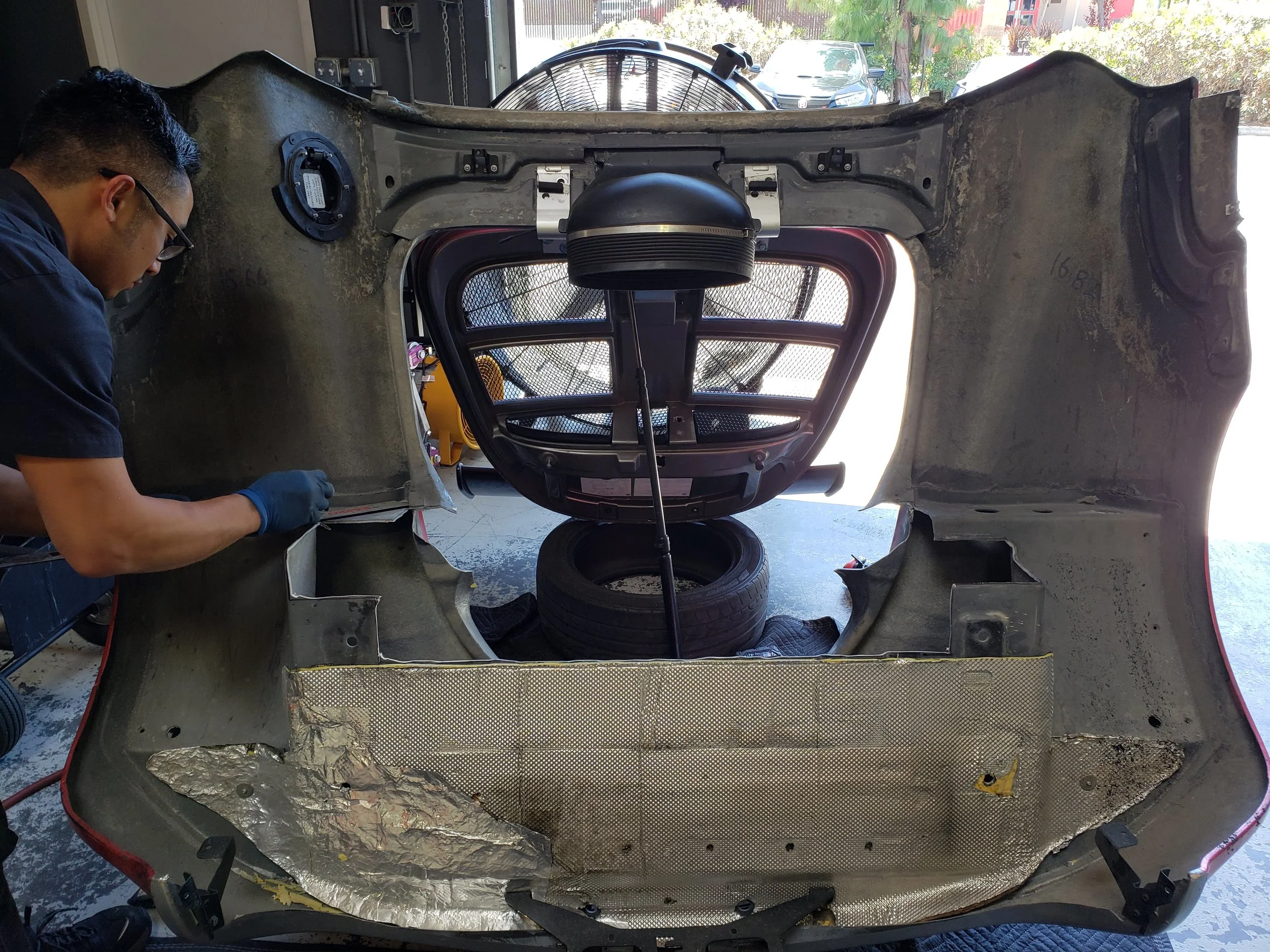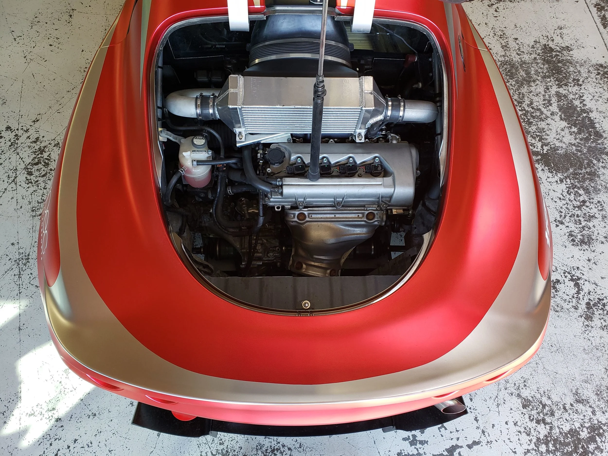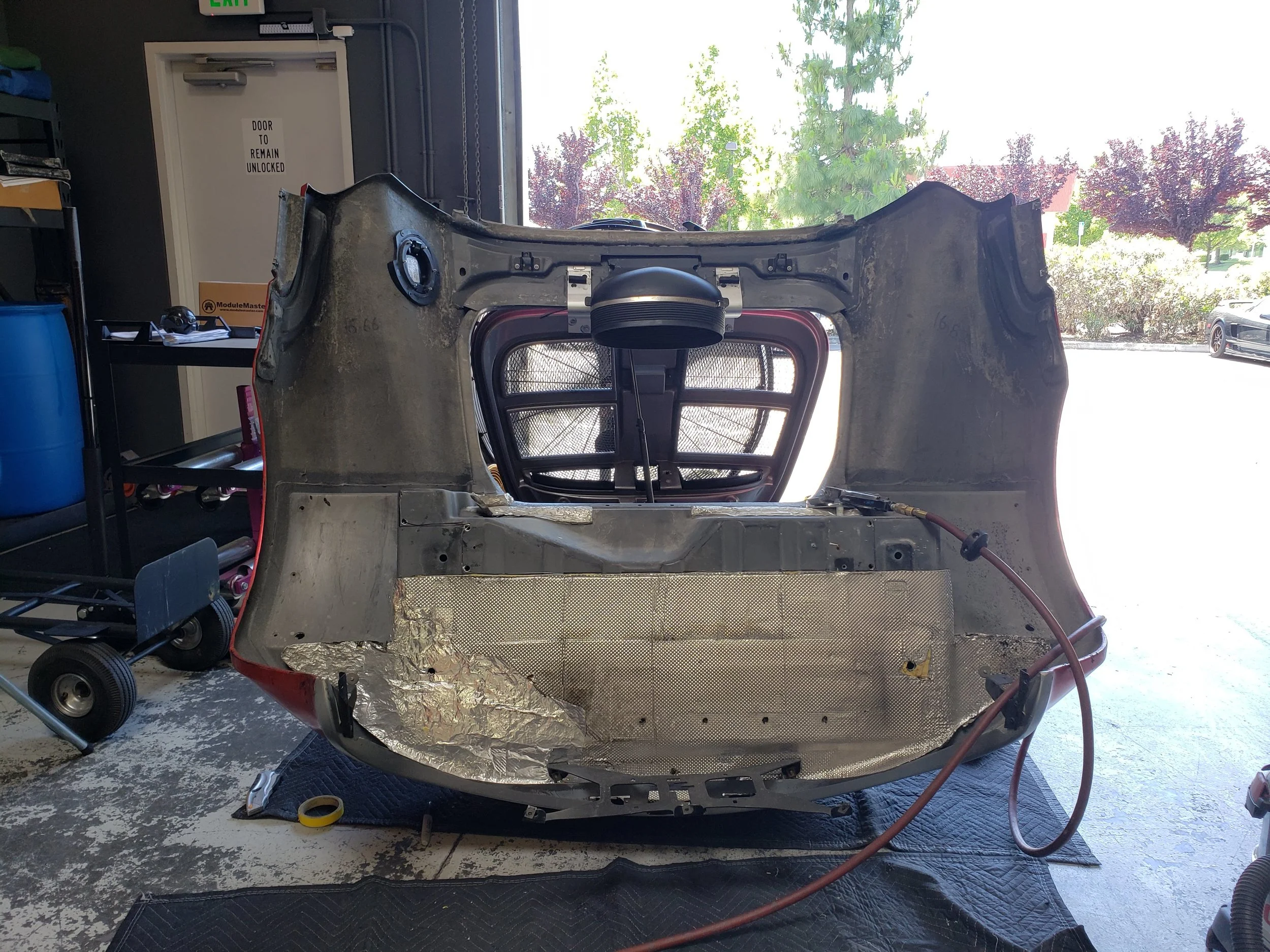 Although there is some weight to be saved by removing the trunk, the main purpose was to free up engine bay space, making it easier to work on. Secondly, removing the turn signal lights and adding grill mesh allows the heat from the engine bay to escape through the rear of the clam. The extra space will also allow me to mount a water-to-air charge cooler away from the hot engine in the future.