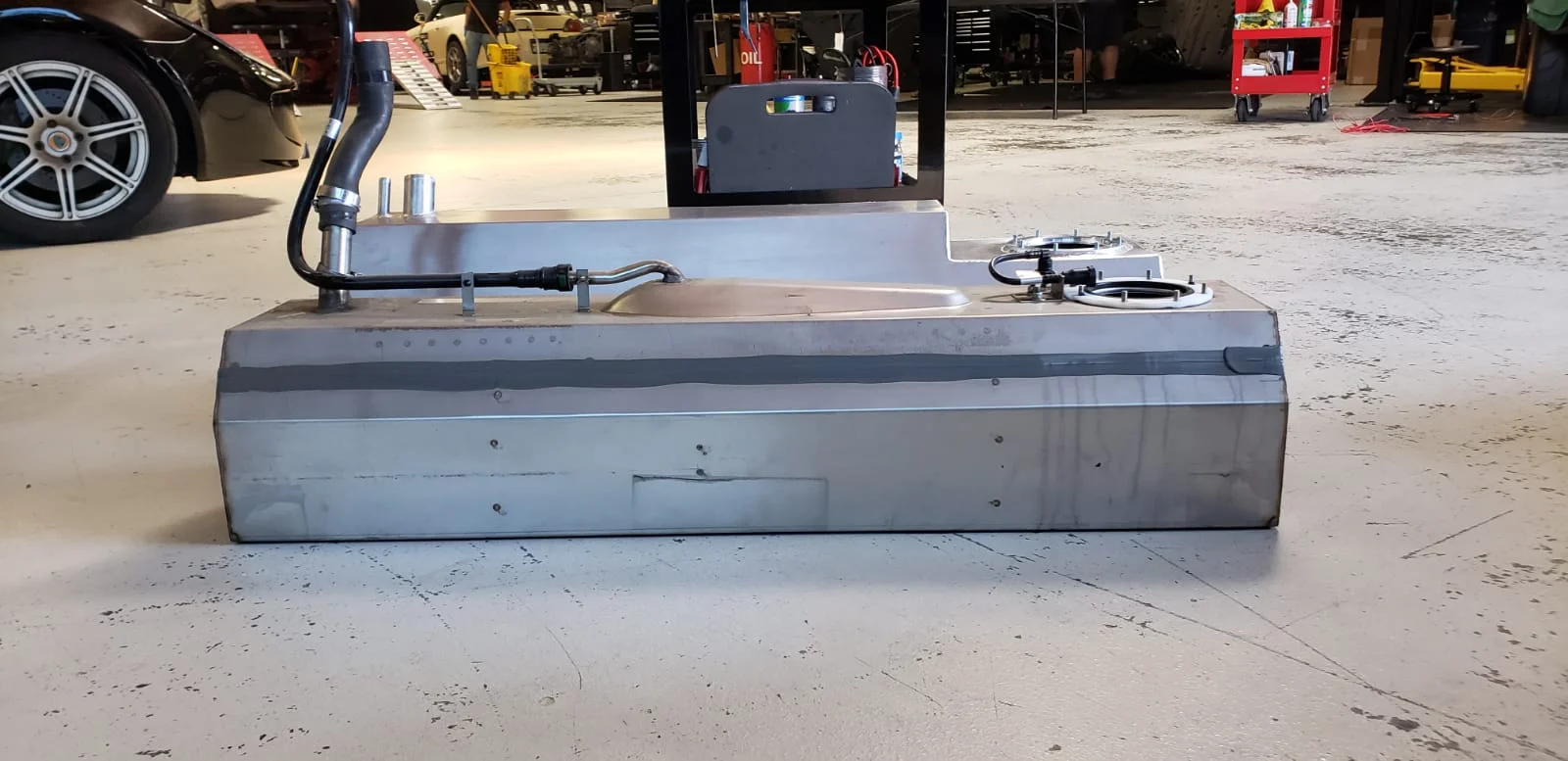 The two most common solutions are a fuel surge tank and a baffled fuel tank. We decided to go with a baffled tank for a couple of reasons: