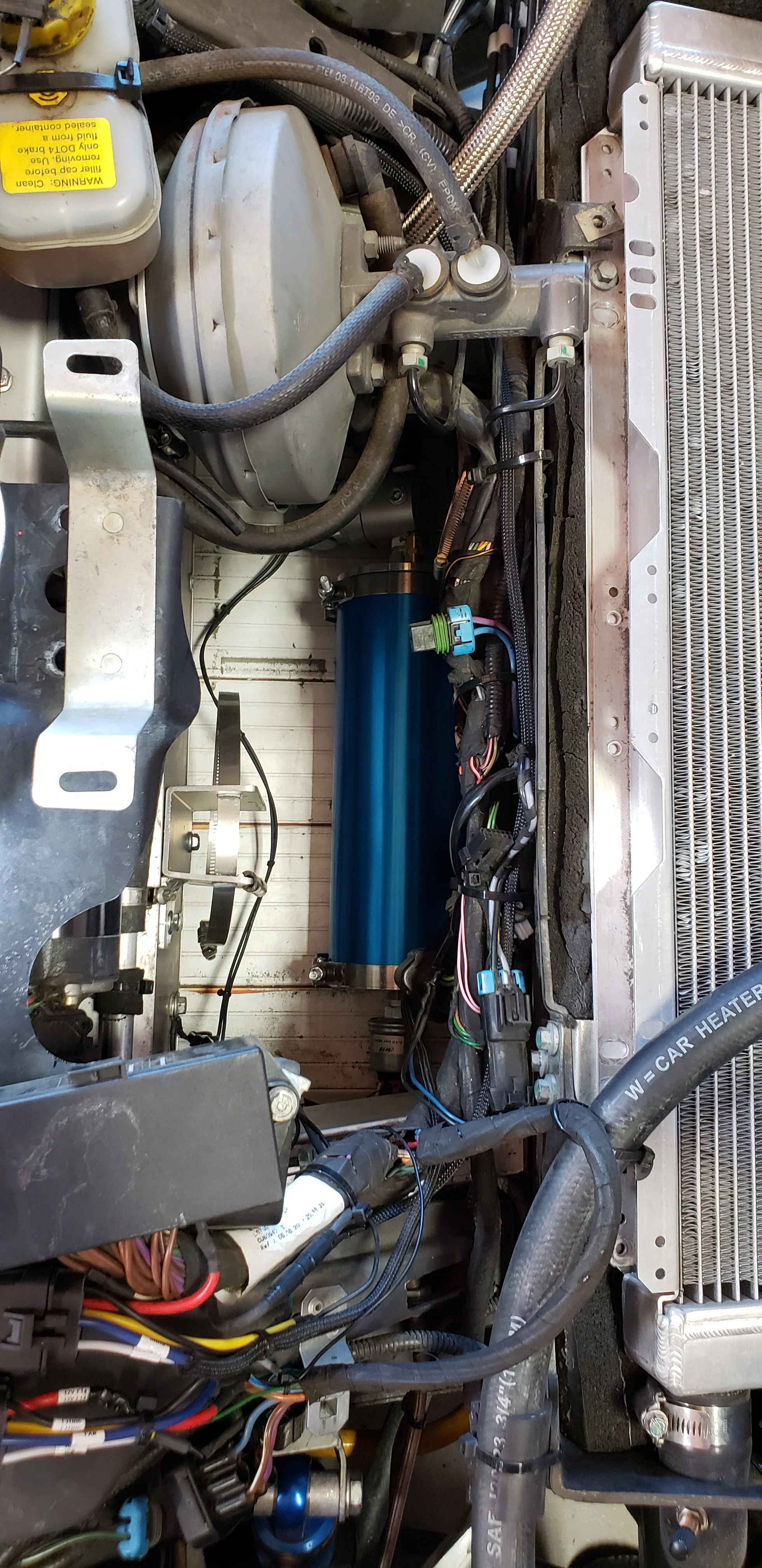 Since we are working with the fuel system, we decided that it would be a good time to replace the original fuel pump, internal fuel filter, and fuel feed line. We used Radium’s kit to convert the fuel feed to a -6AN PTFE hose.