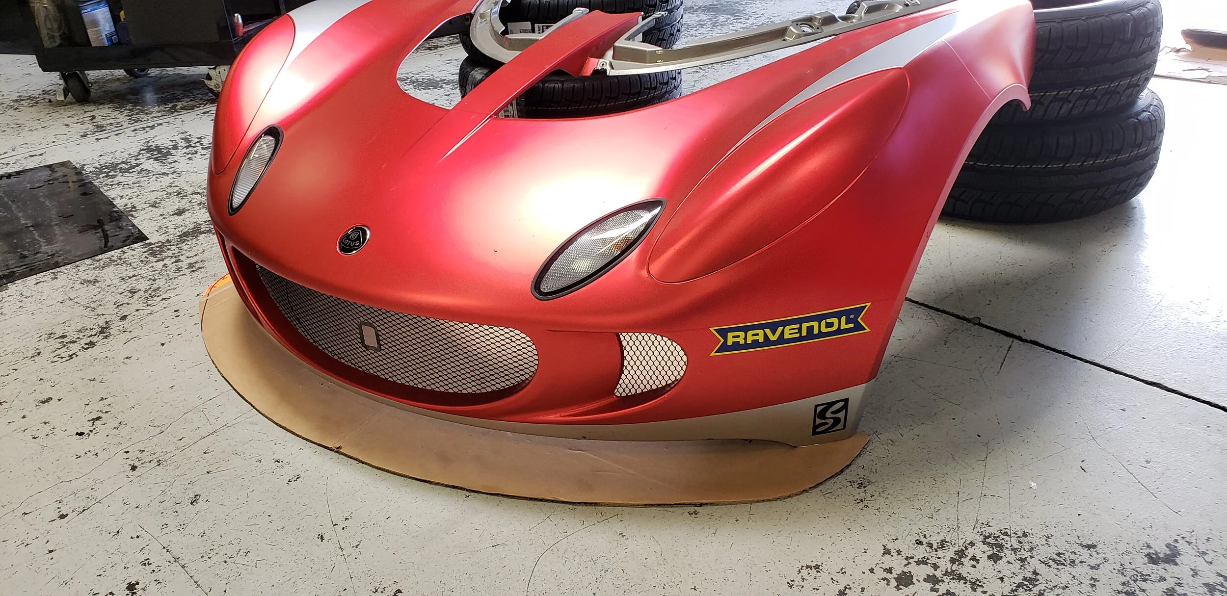 The Reverie front splitter we put on the car is very well made and we have no complaints. However, it is pricey for a “consumable” part and took a few weeks for us to receive from the UK. In NASAs ST4 class, we are allowed 4” from where the splitter meets air dam, so we wanted to maximize that. The splitter must also be flat, which the Reverie one is not. Our solution is to make a custom part. First out of cardboard, then wood, and finally Carbon.