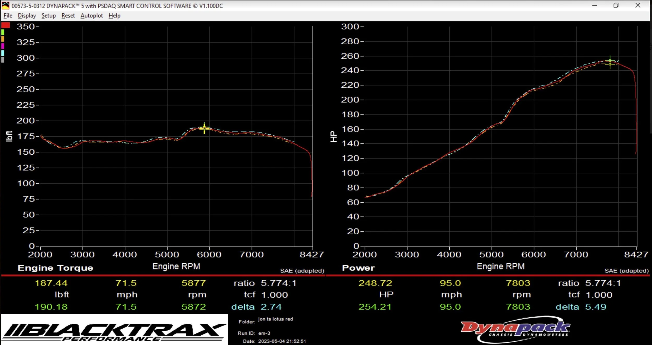 With a new ECU, the car had to be tuned again. With no other changes, I was surprised to see that the car had gained 6hp and 10ft lbs of torque! This is likely the result of a more capable ECU, more precise fuel metering, and better DBW control at high RPM.