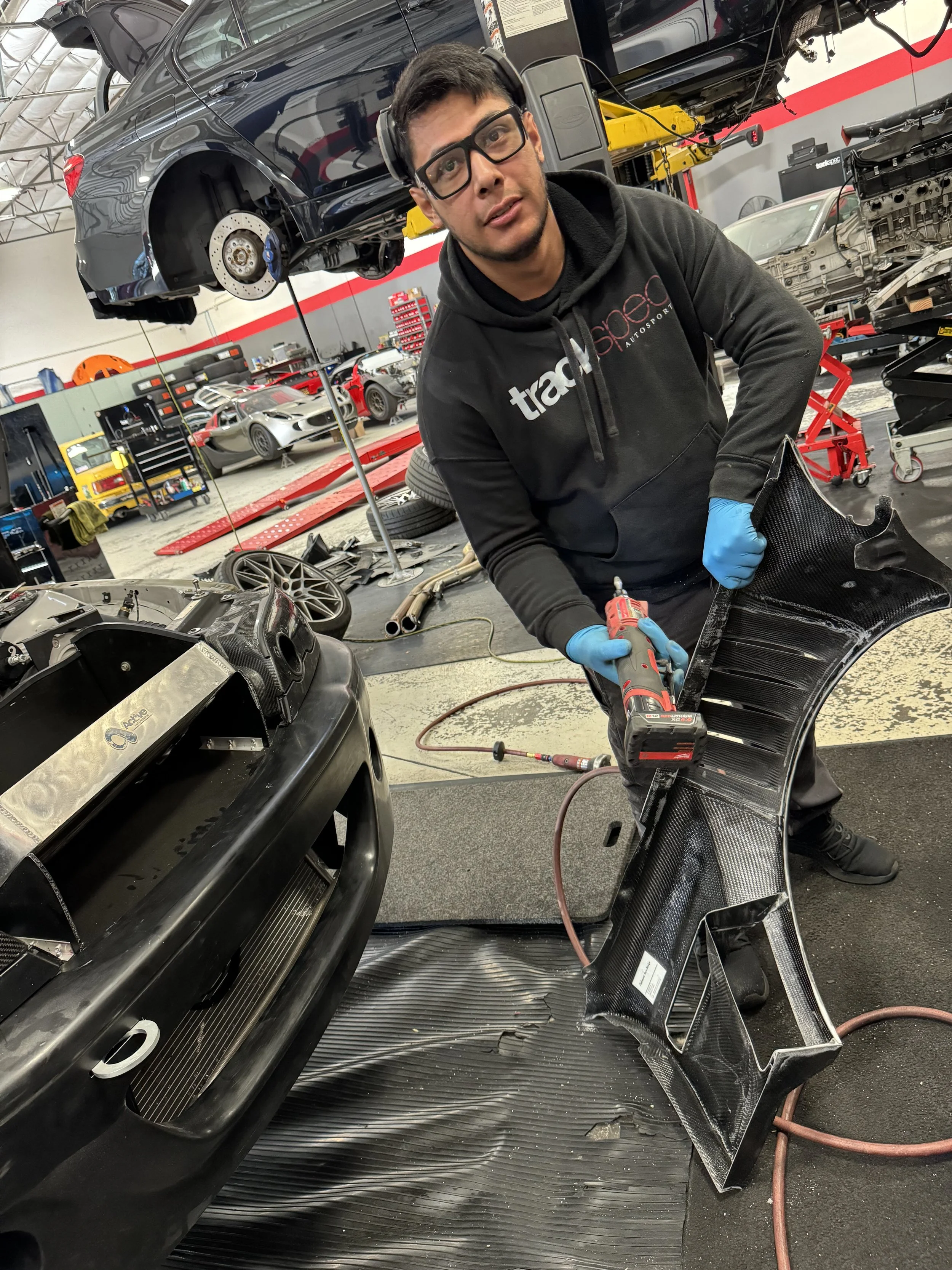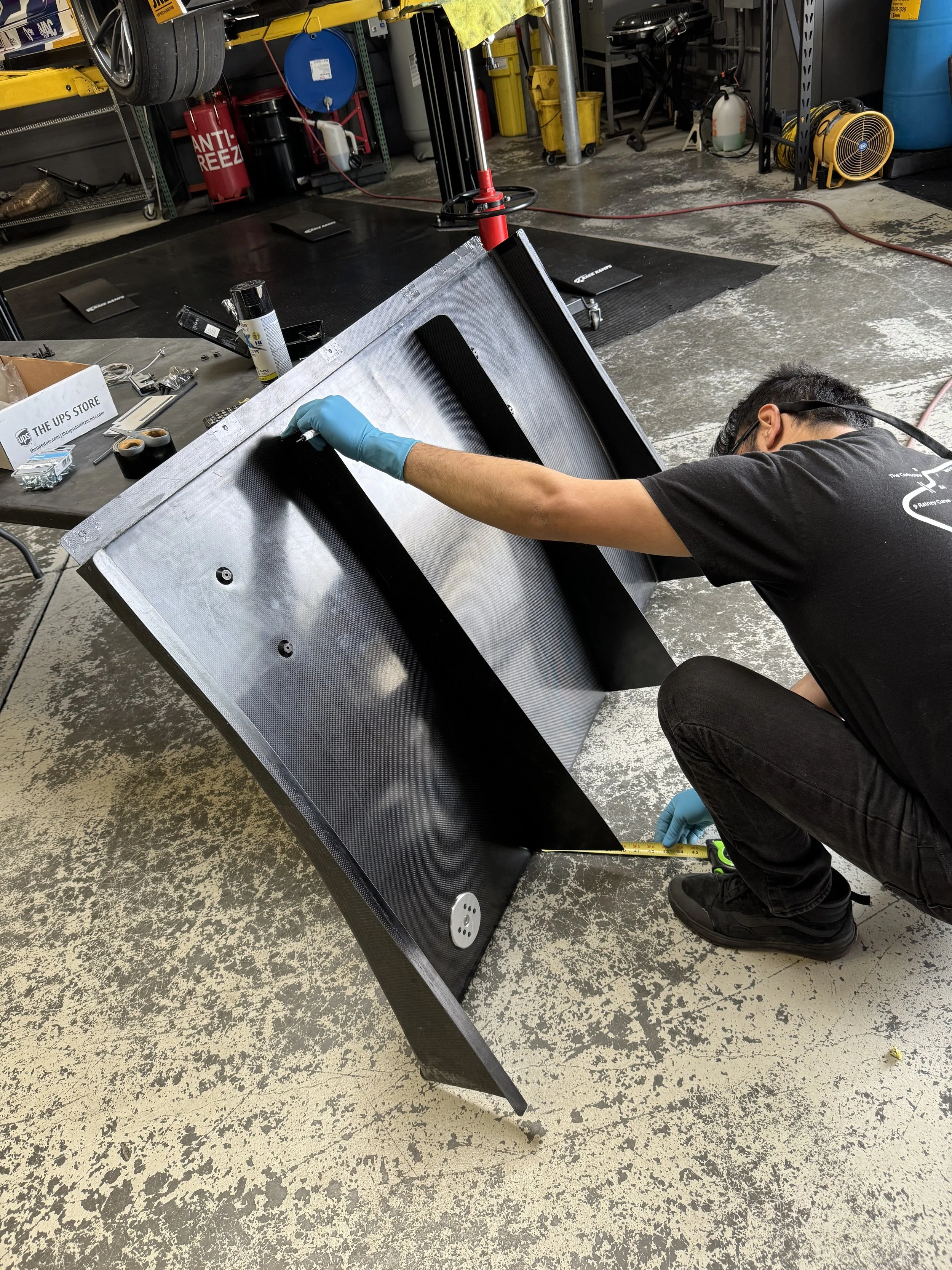 Mike finishing up the final piece of the puzzle, the carbon rear diffuser.