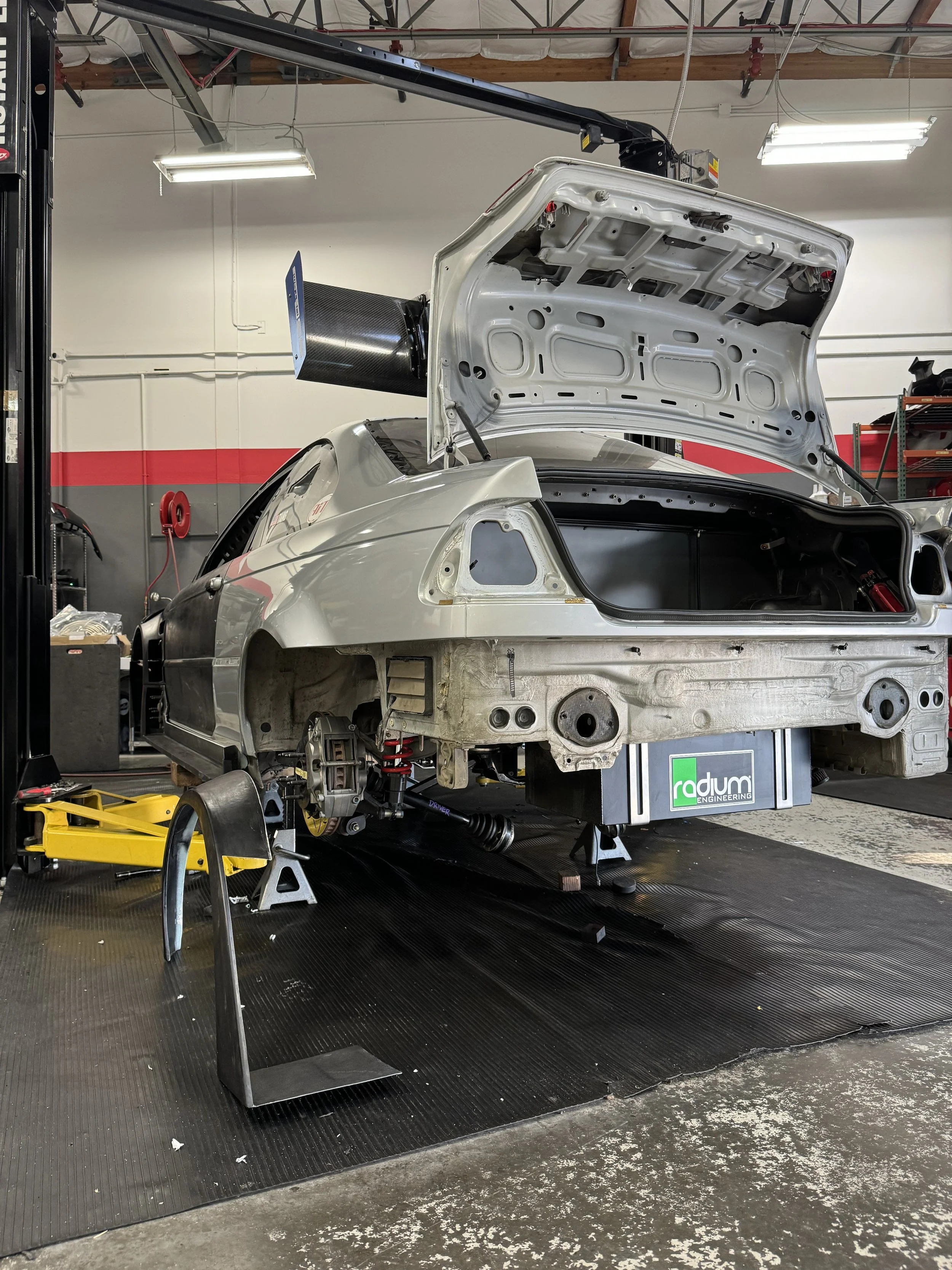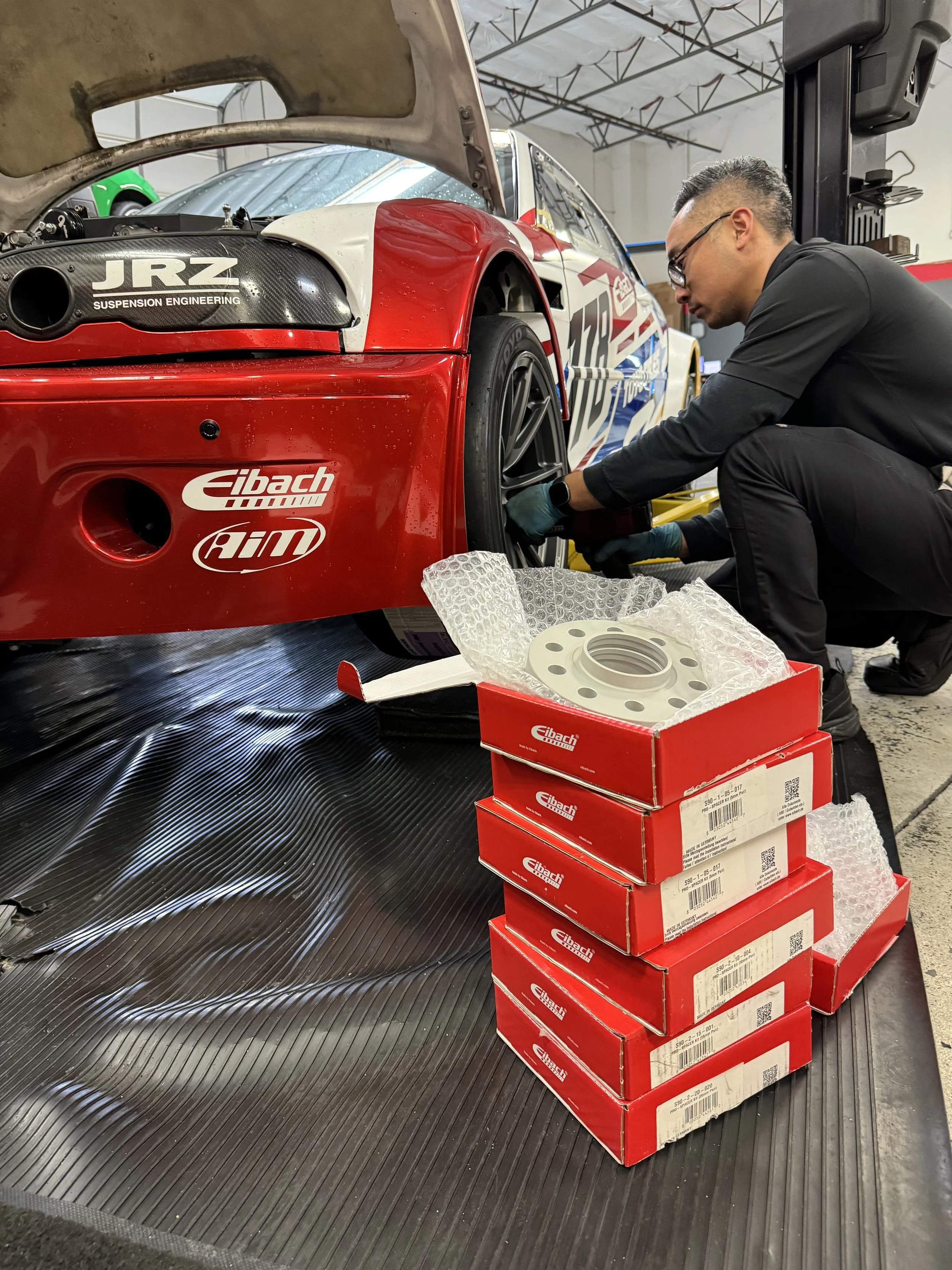 Once the car came back, we began to finalize the fitment of the wheels using hub centric spacers from our partners at Eibach.
