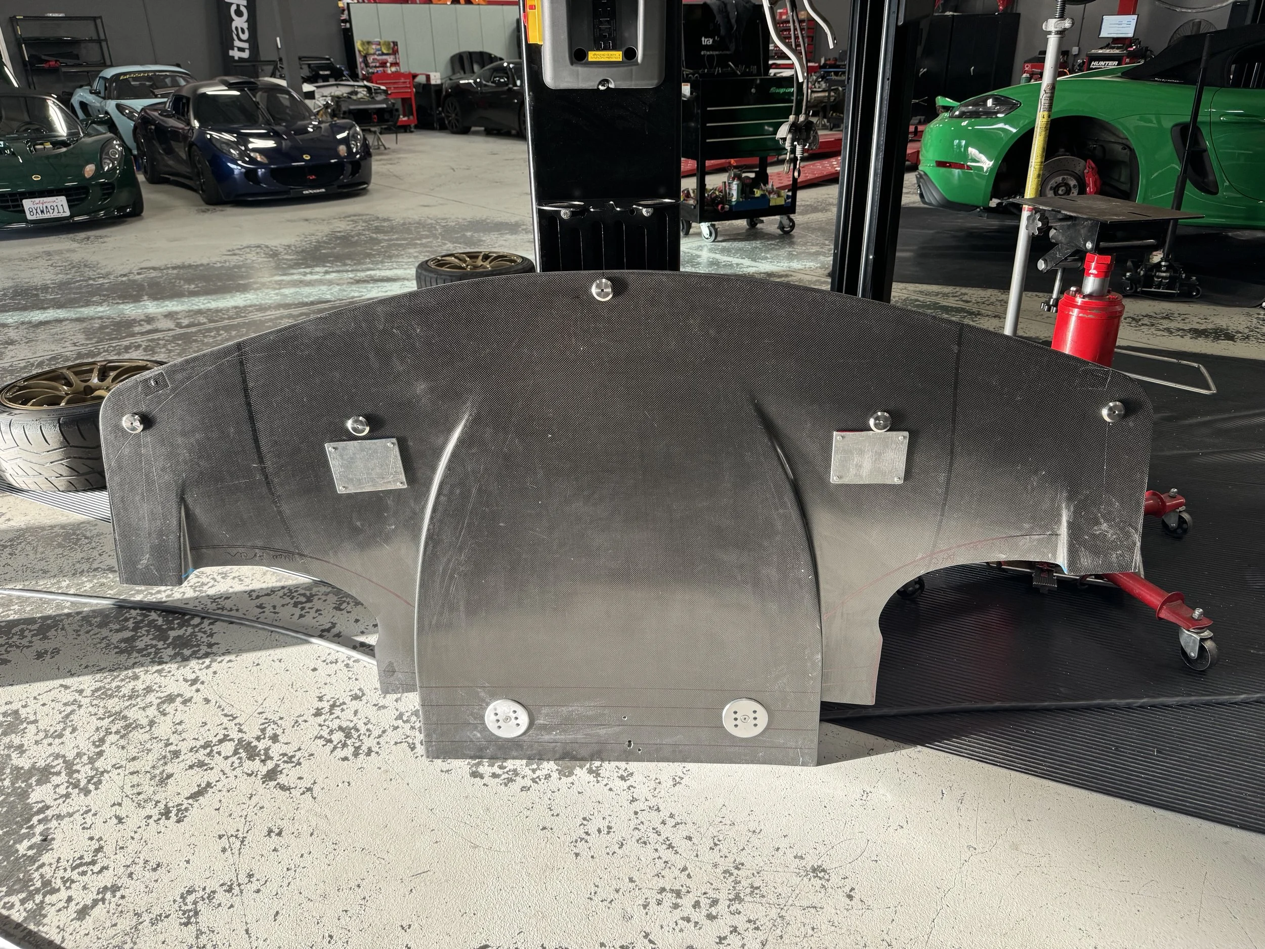 We added titanium pucks and strikers to the front splitter because it’s going to be bumpy at Pikes Peak and we want to protect the splitter from getting damaged.