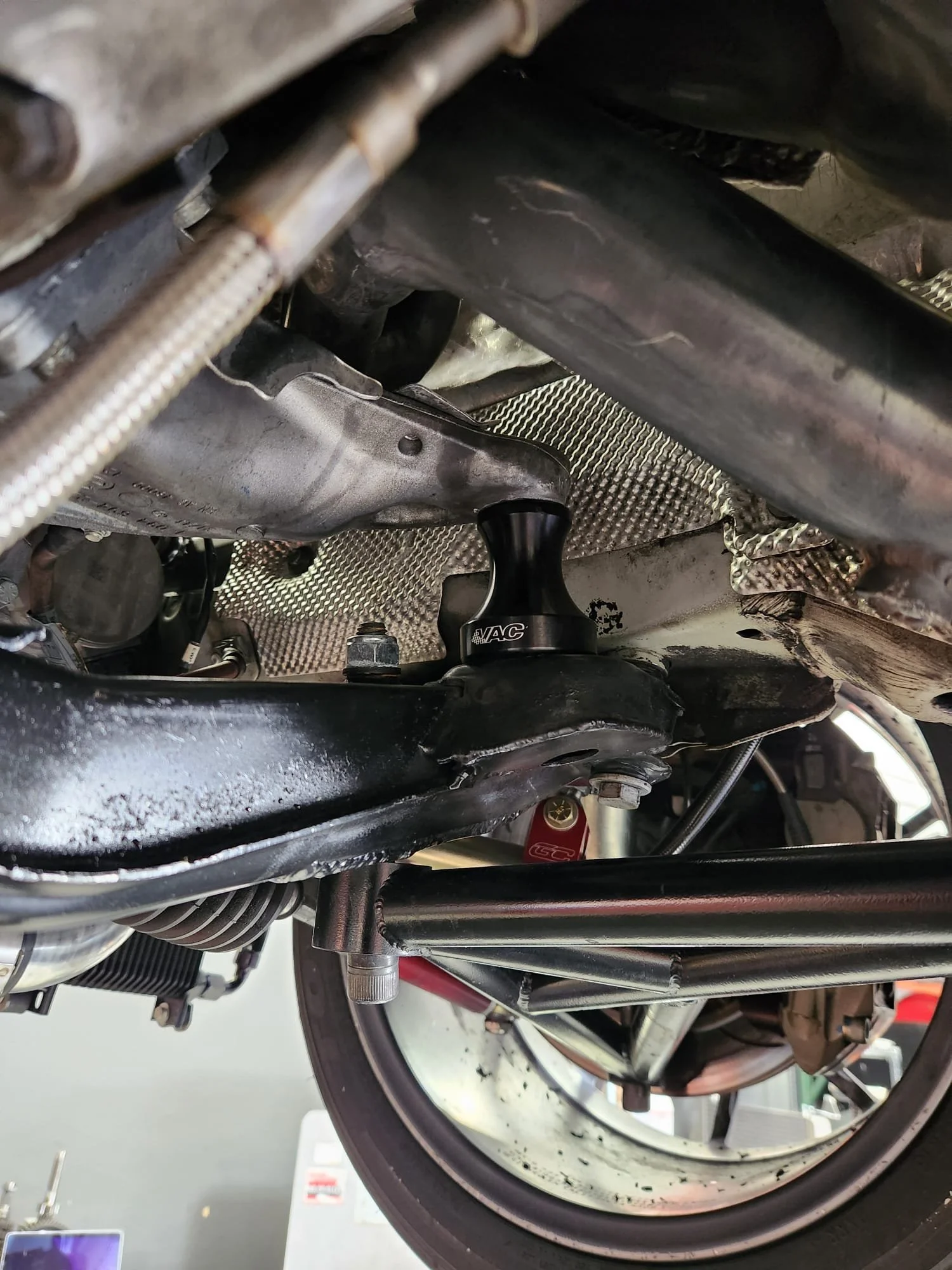 After the first shakedown at Thunderhill, we realized the engine and transmission were moving around way too much which is bad for two reasons; drivetrain loss and we also risk breaking something. So we decided to ask our friends at VAC Motorsports for their bad ass solid billet engine and trans mounts. They are gorgeous pieces and really nicely made.