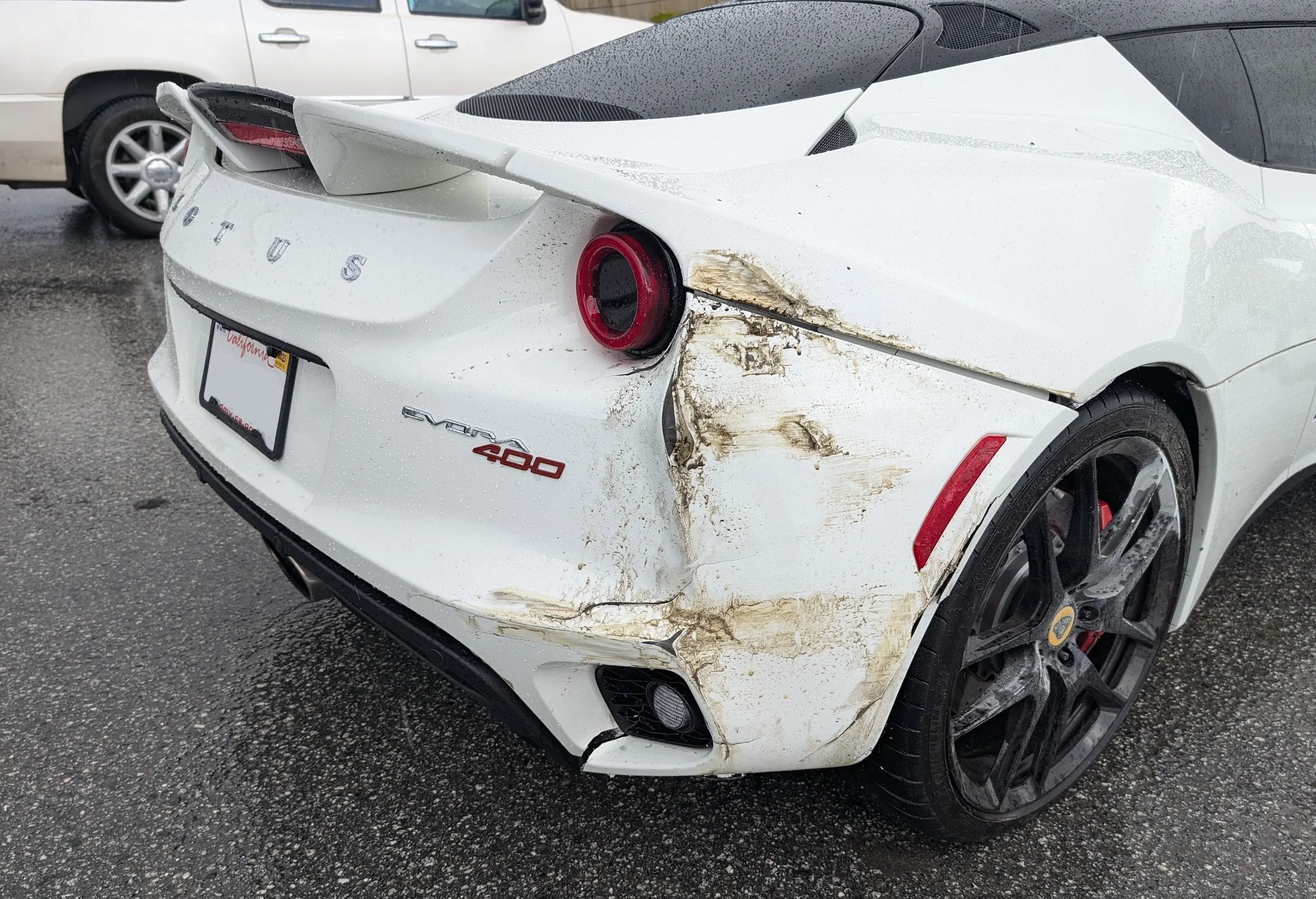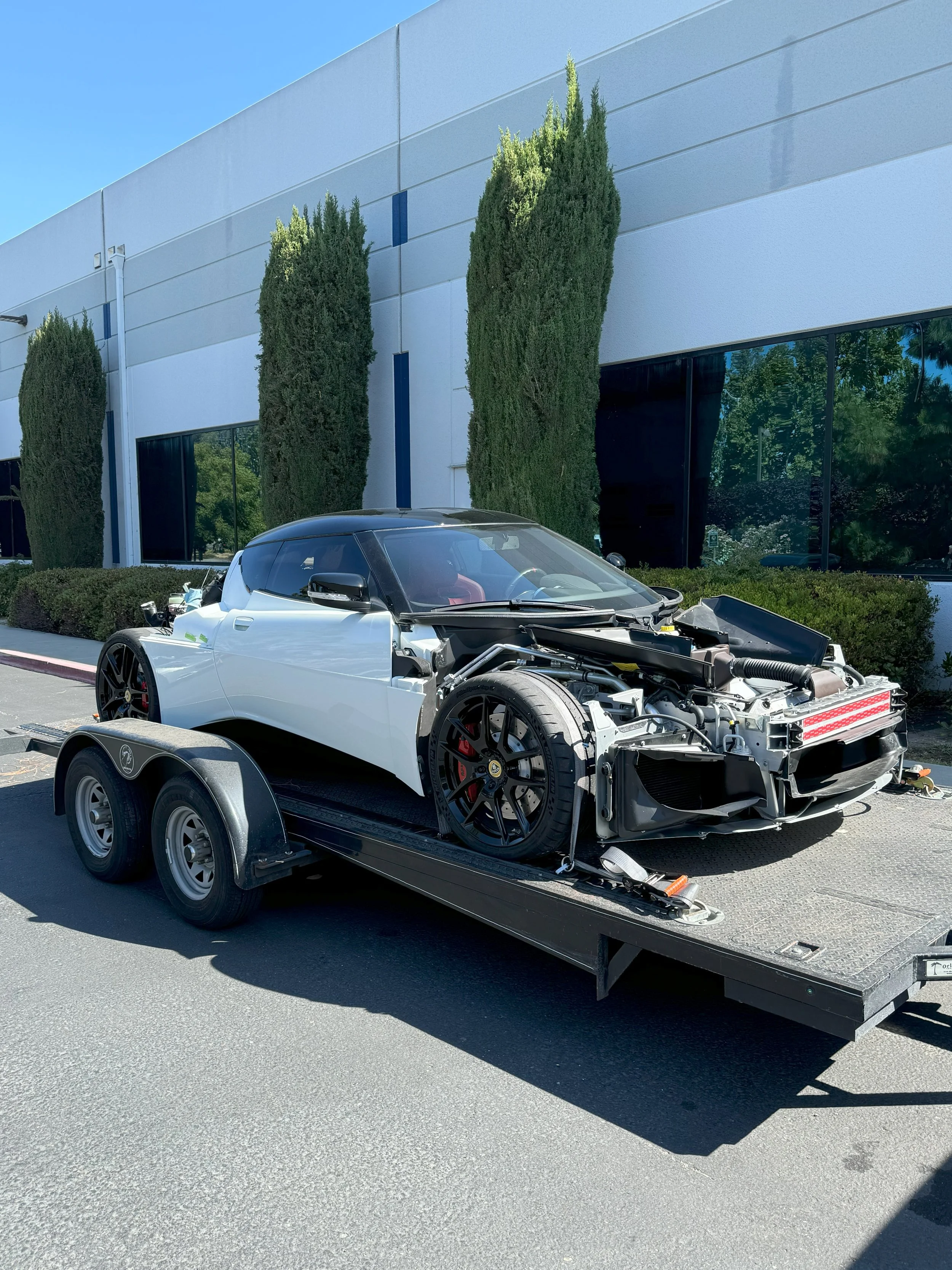 On a Saturday evening earlier this year, I stopped by the shop and unexpectedly saw an Evora in our parking lot that looked like it had been in an accident. I later received an email confirming this, and it had been towed in for an evaluation.